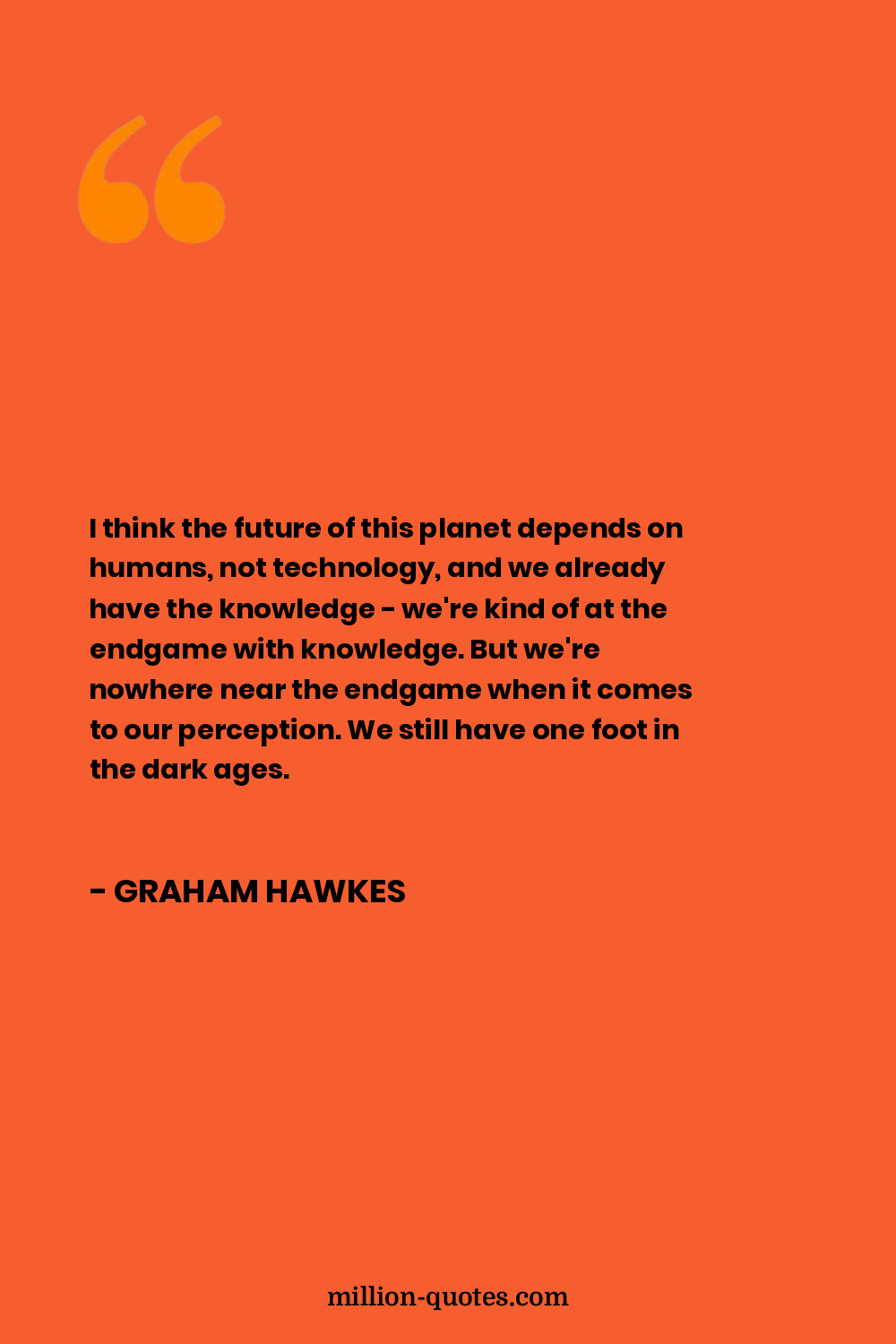 I think the future of this planet depends on humans, not technology, and we already have the knowledge - we're kind of at the endgame with knowledge. But we're nowhere near the endgame when it comes to our perception. We still have one foot in the dark ages.
