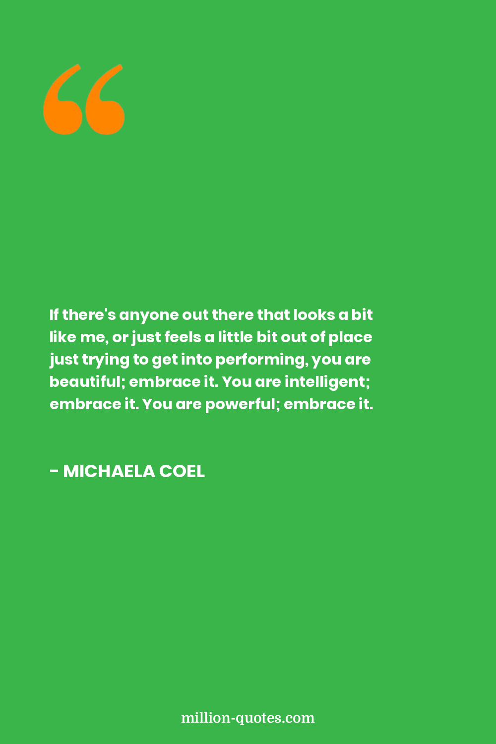 If there's anyone out there that looks a bit like me, or just feels a little bit out of place just trying to get into performing, you are beautiful; embrace it. You are intelligent; embrace it. You are powerful; embrace it.