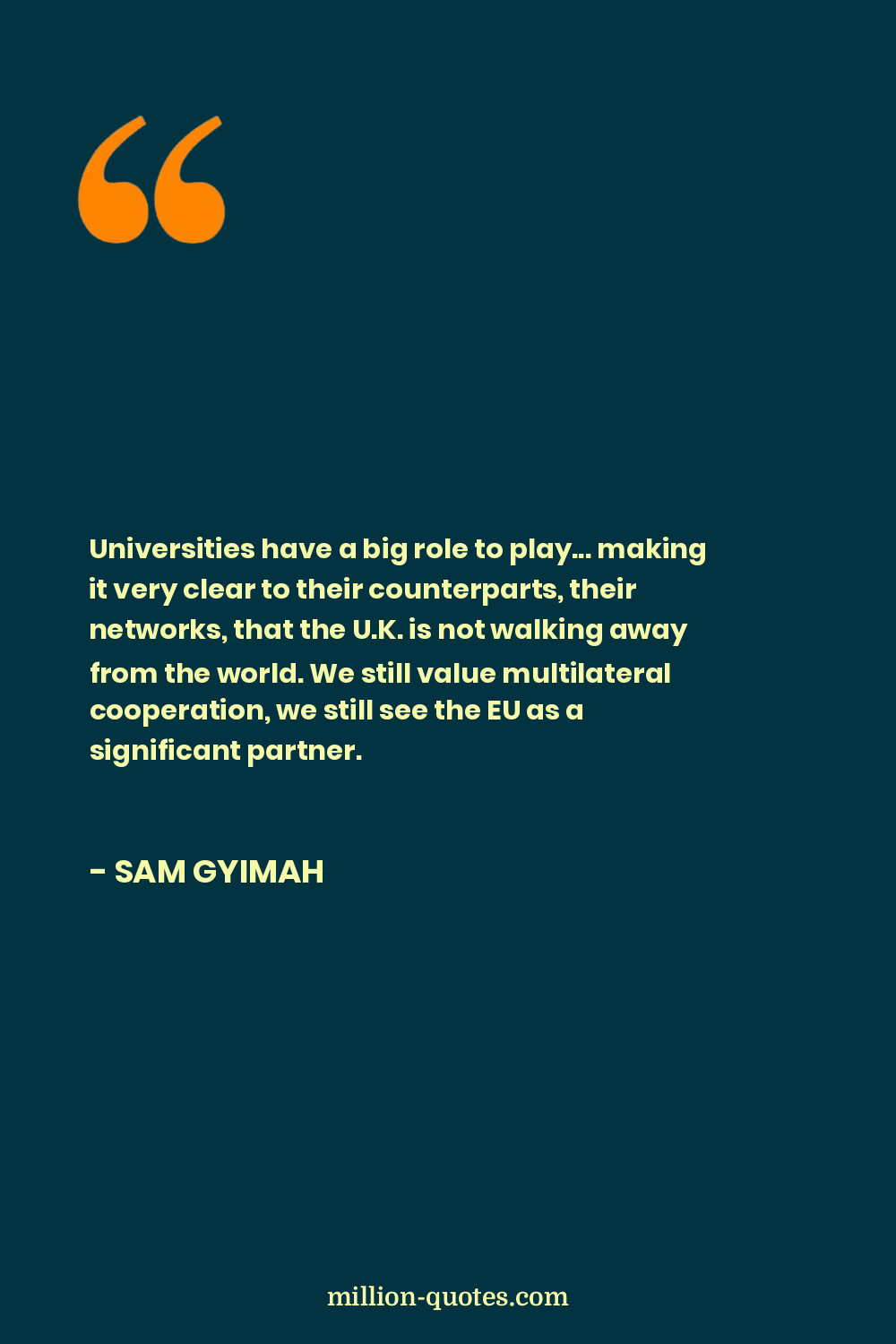 Universities have a big role to play... making it very clear to their counterparts, their networks, that the U.K. is not walking away from the world. We still value multilateral cooperation, we still see the EU as a significant partner.