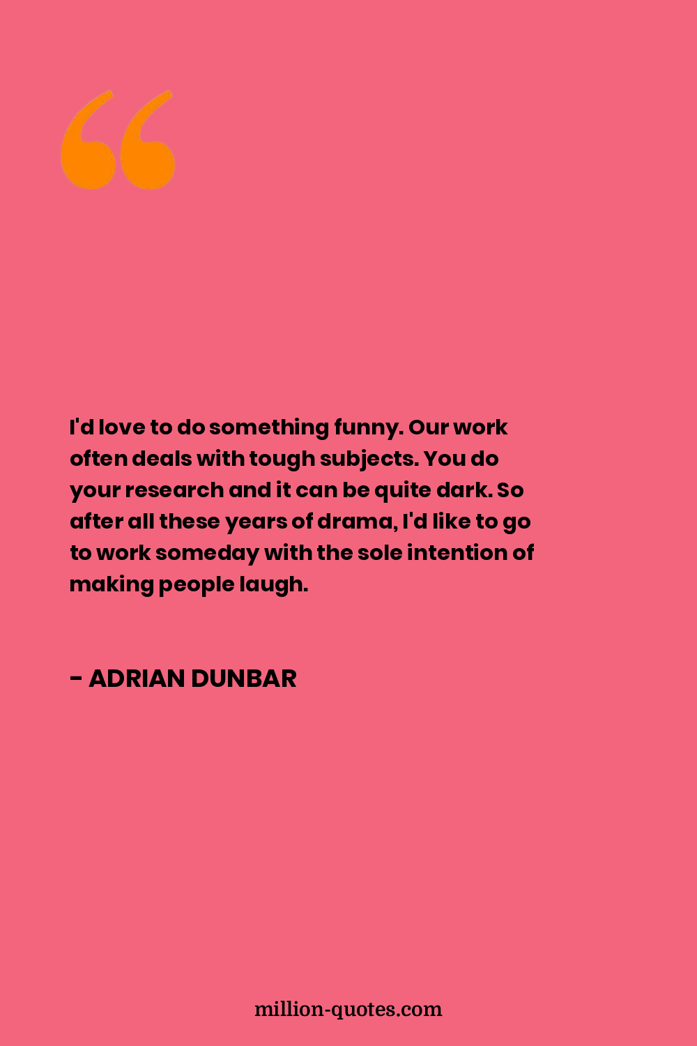 I'd love to do something funny. Our work often deals with tough subjects. You do your research and it can be quite dark. So after all these years of drama, I'd like to go to work someday with the sole intention of making people laugh.