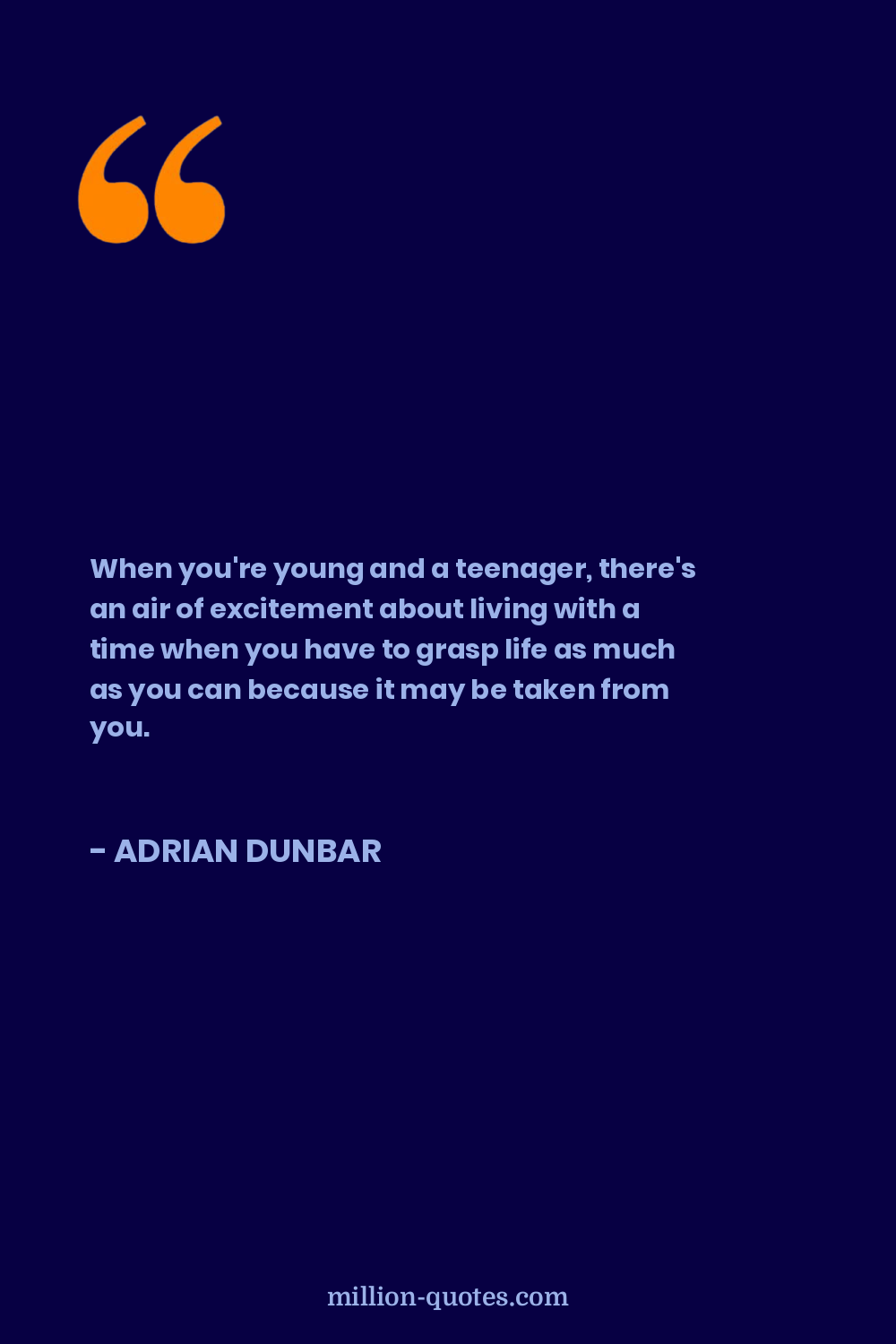 When you're young and a teenager, there's an air of excitement about living with a time when you have to grasp life as much as you can because it may be taken from you.