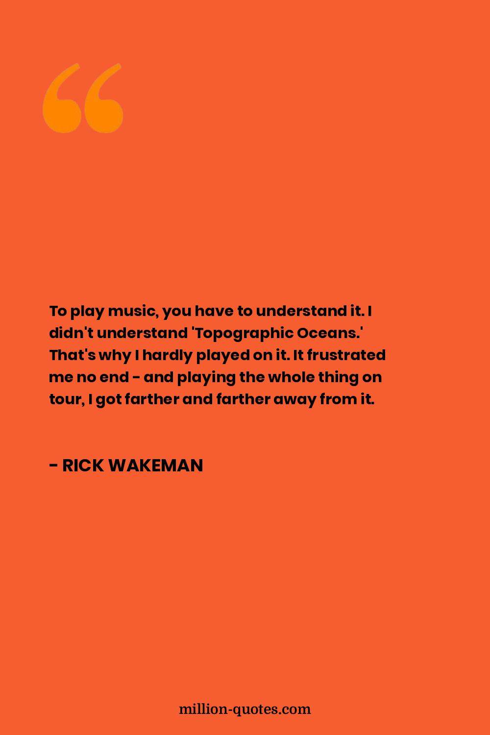 To play music, you have to understand it. I didn't understand 'Topographic Oceans.' That's why I hardly played on it. It frustrated me no end - and playing the whole thing on tour, I got farther and farther away from it.