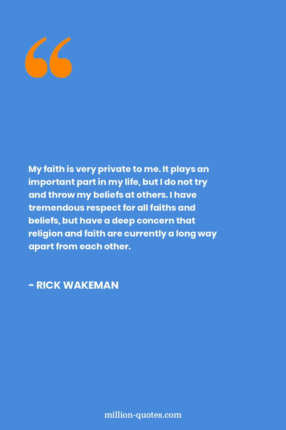 My faith is very private to me. It plays an important part in my life, but I do not try and throw my beliefs at others. I have tremendous respect for all faiths and beliefs, but have a deep concern that religion and faith are currently a long way apart from each other.