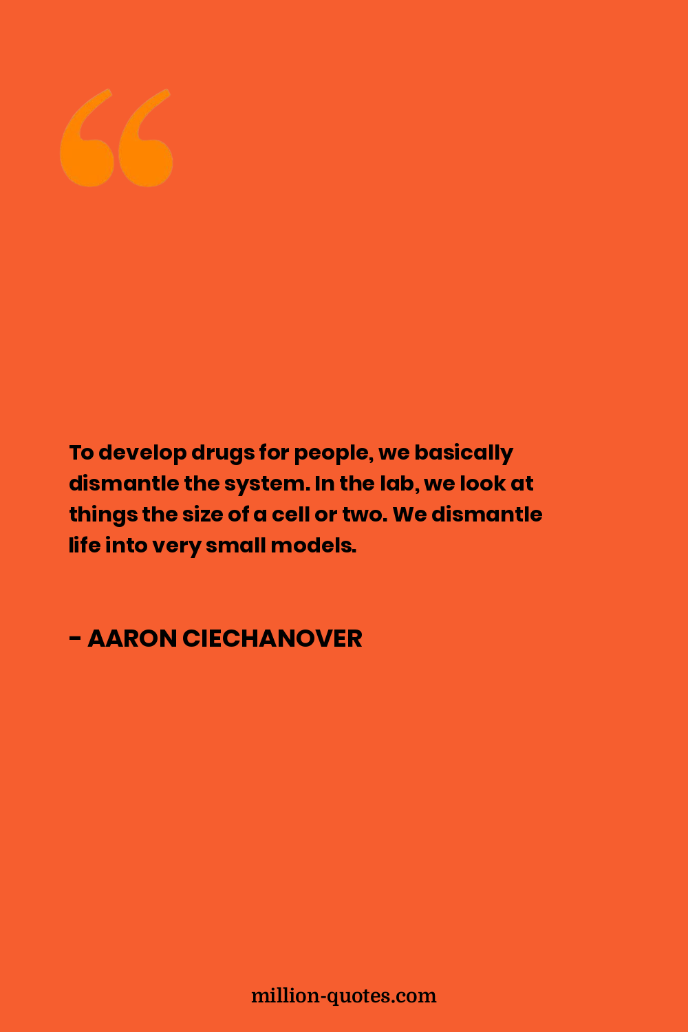 To develop drugs for people, we basically dismantle the system. In the lab, we look at things the size of a cell or two. We dismantle life into very small models.