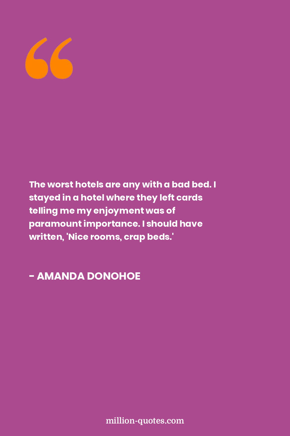 The worst hotels are any with a bad bed. I stayed in a hotel where they left cards telling me my enjoyment was of paramount importance. I should have written, 'Nice rooms, crap beds.'