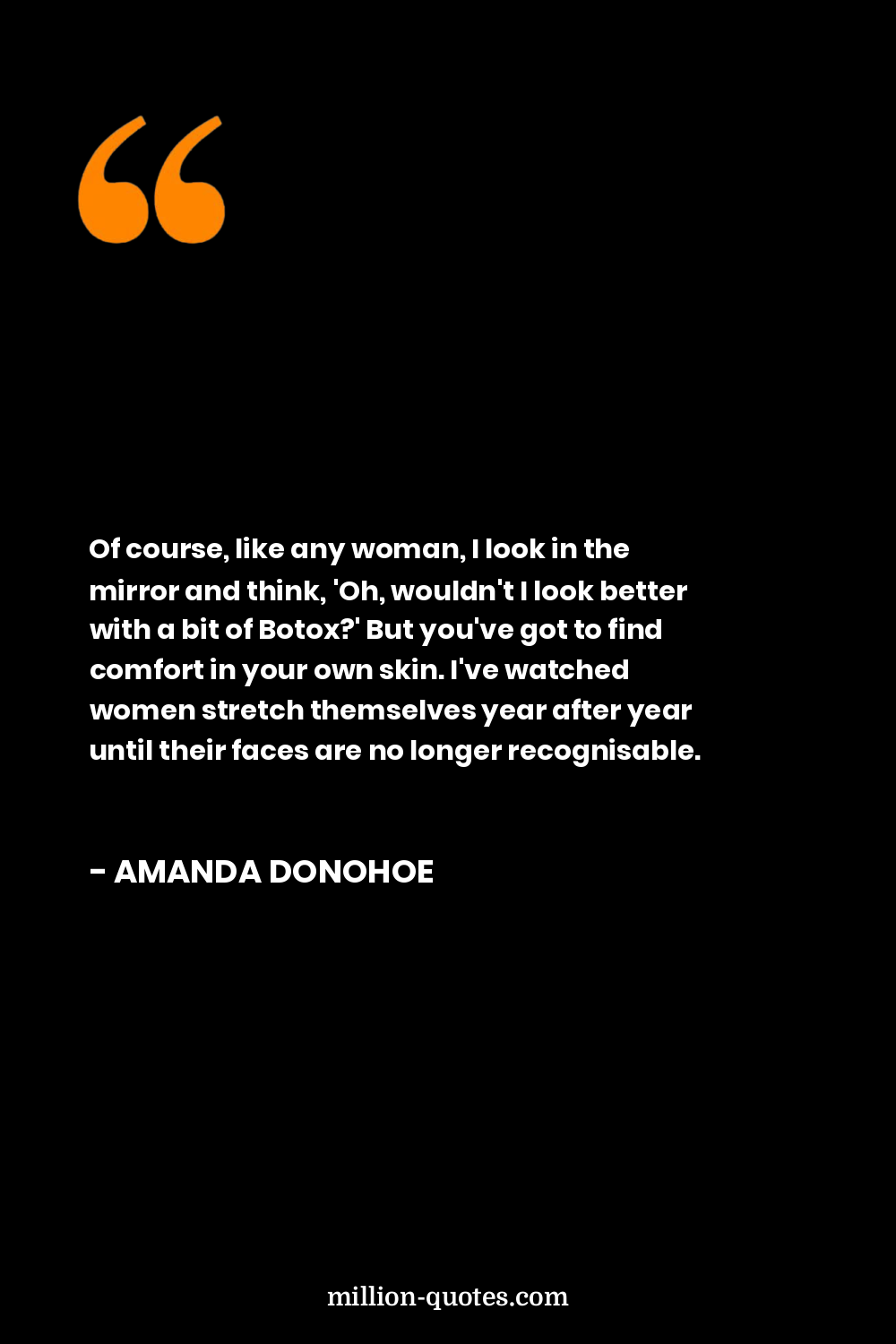 Of course, like any woman, I look in the mirror and think, 'Oh, wouldn't I look better with a bit of Botox?' But you've got to find comfort in your own skin. I've watched women stretch themselves year after year until their faces are no longer recognisable.