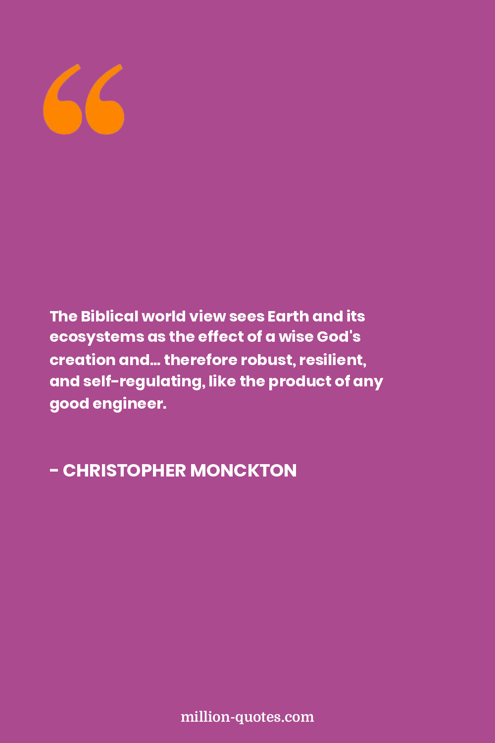 The Biblical world view sees Earth and its ecosystems as the effect of a wise God's creation and... therefore robust, resilient, and self-regulating, like the product of any good engineer.