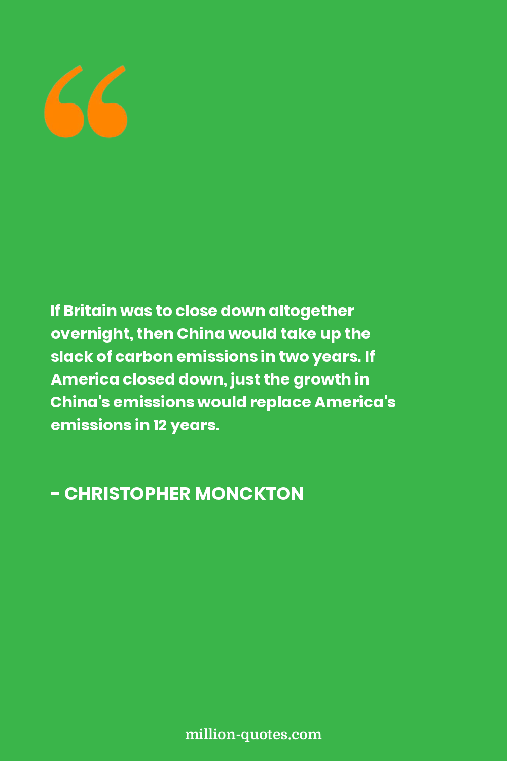 If Britain was to close down altogether overnight, then China would take up the slack of carbon emissions in two years. If America closed down, just the growth in China's emissions would replace America's emissions in 12 years.