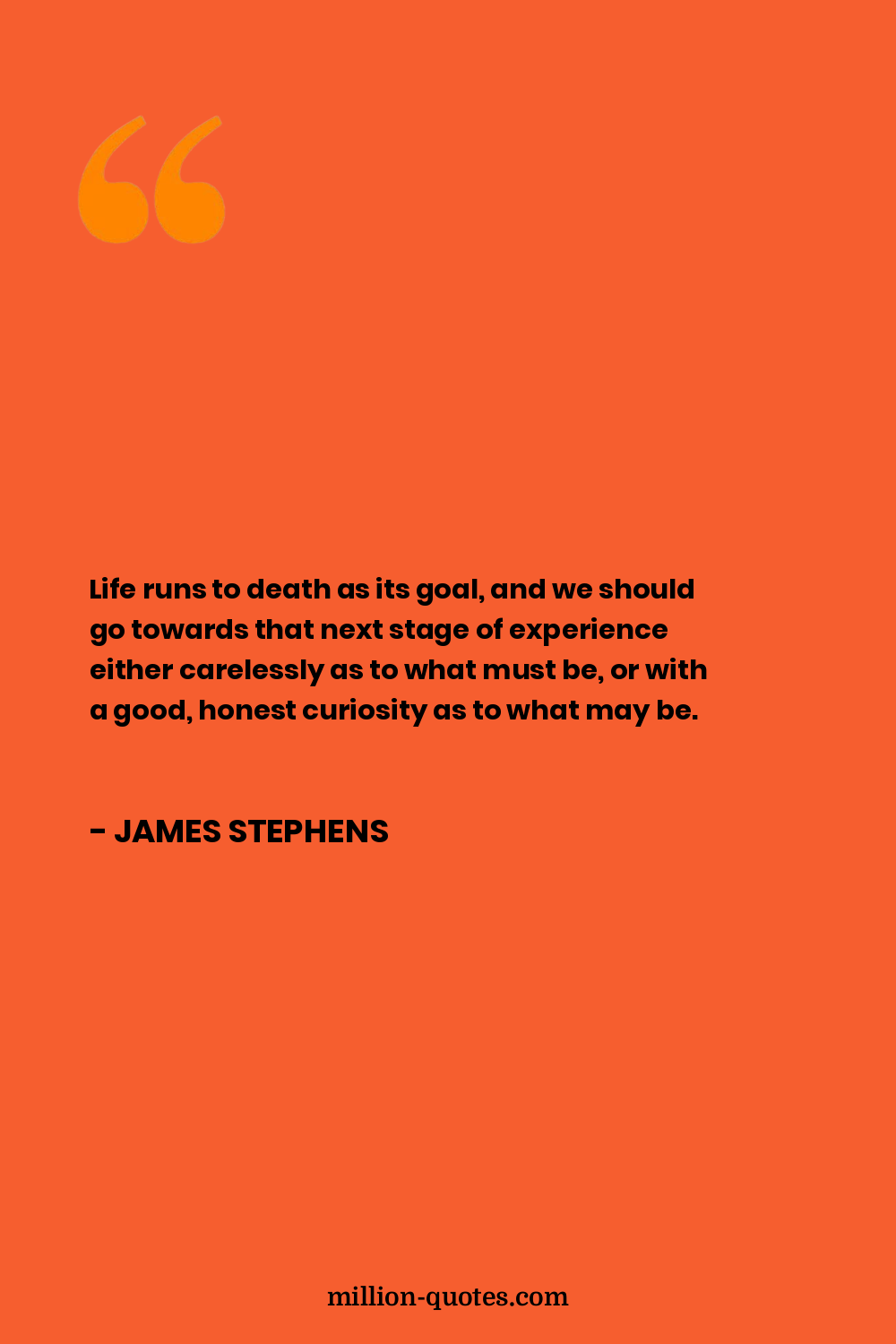 Life runs to death as its goal, and we should go towards that next stage of experience either carelessly as to what must be, or with a good, honest curiosity as to what may be.