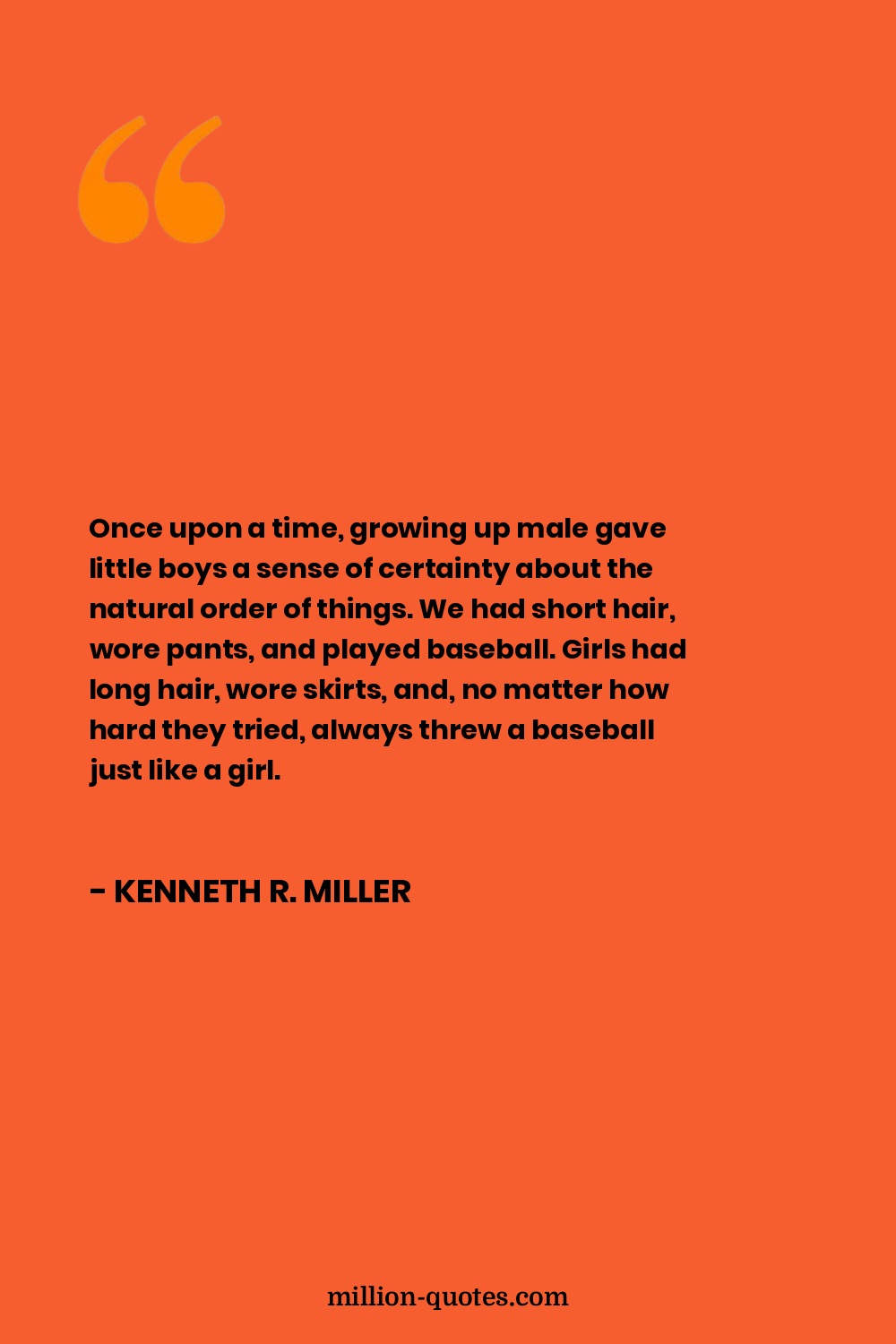 Once upon a time, growing up male gave little boys a sense of certainty about the natural order of things. We had short hair, wore pants, and played baseball. Girls had long hair, wore skirts, and, no matter how hard they tried, always threw a baseball just like a girl.