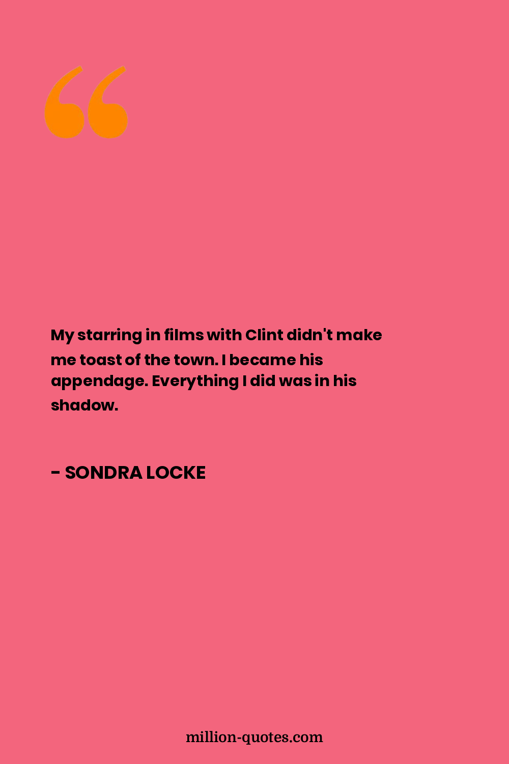 My starring in films with Clint didn't make me toast of the town. I became his appendage. Everything I did was in his shadow.