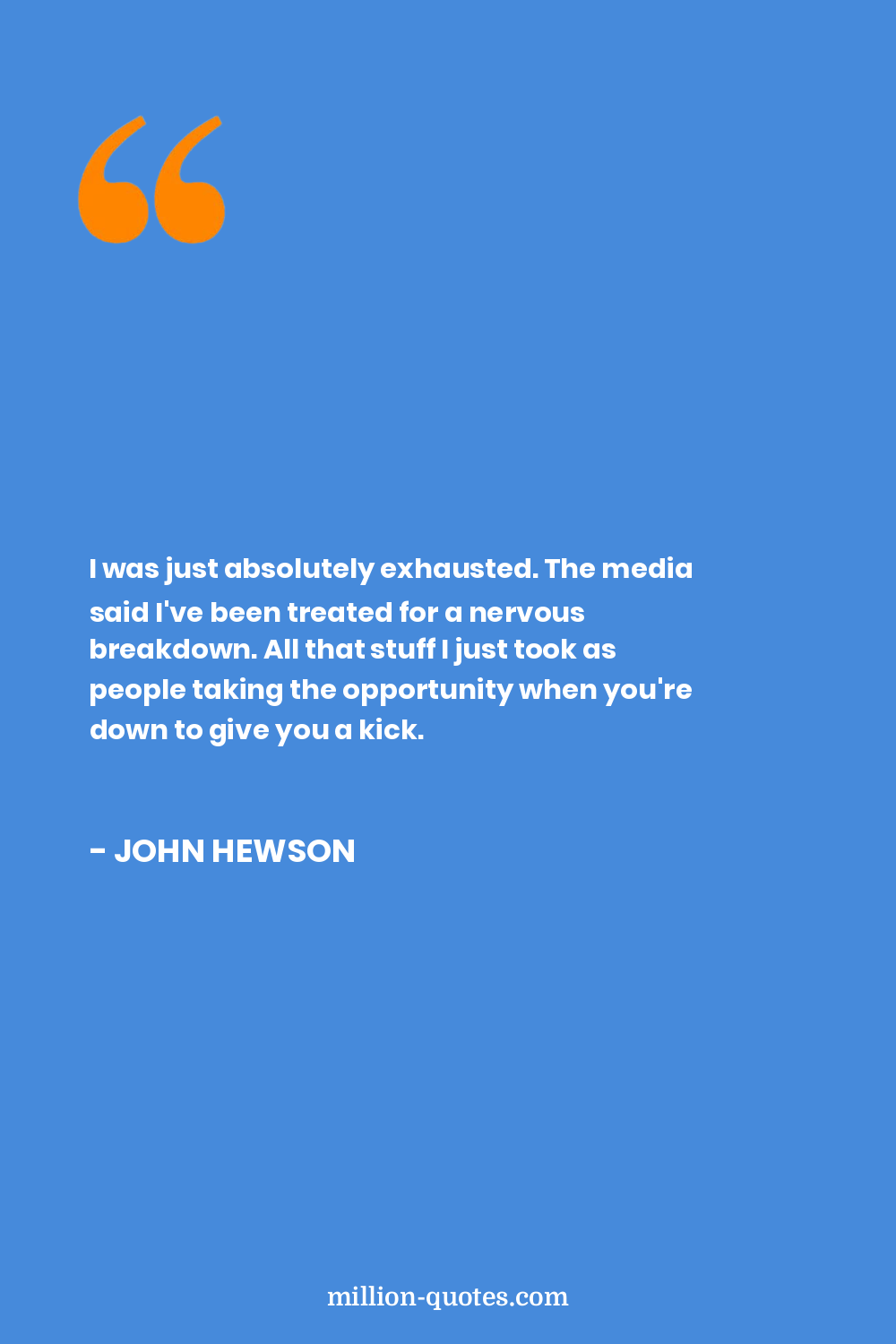 I was just absolutely exhausted. The media said I've been treated for a nervous breakdown. All that stuff I just took as people taking the opportunity when you're down to give you a kick.