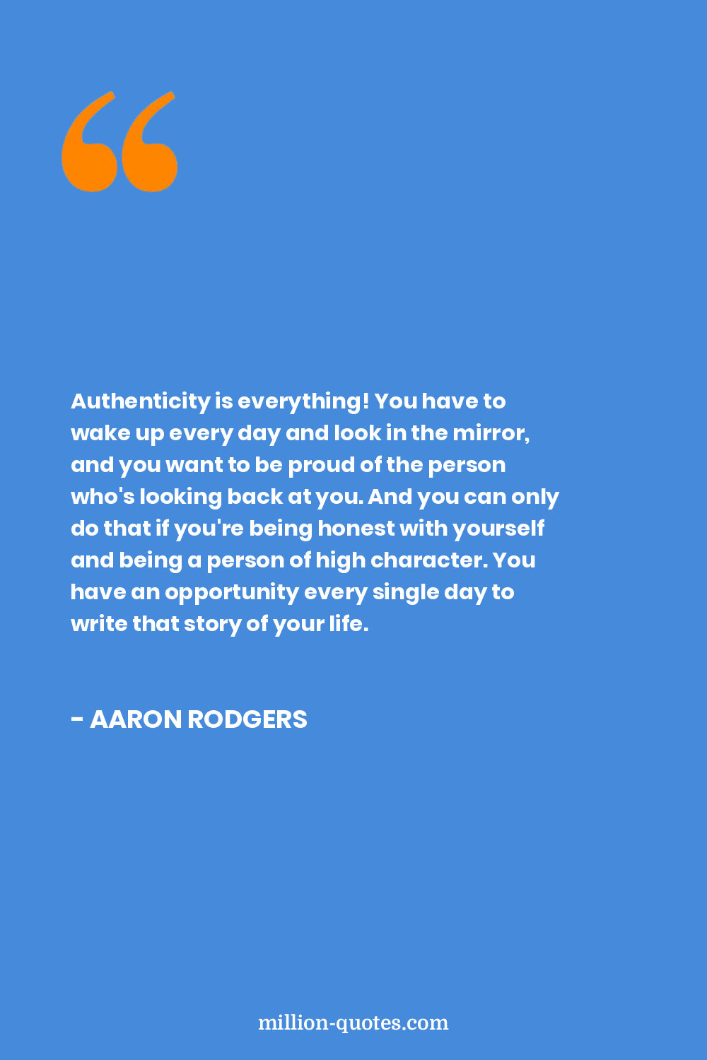 Authenticity is everything! You have to wake up every day and look in the mirror, and you want to be proud of the person who's looking back at you. And you can only do that if you're being honest with yourself and being a person of high character. You have an opportunity every single day to write that story of your life.
