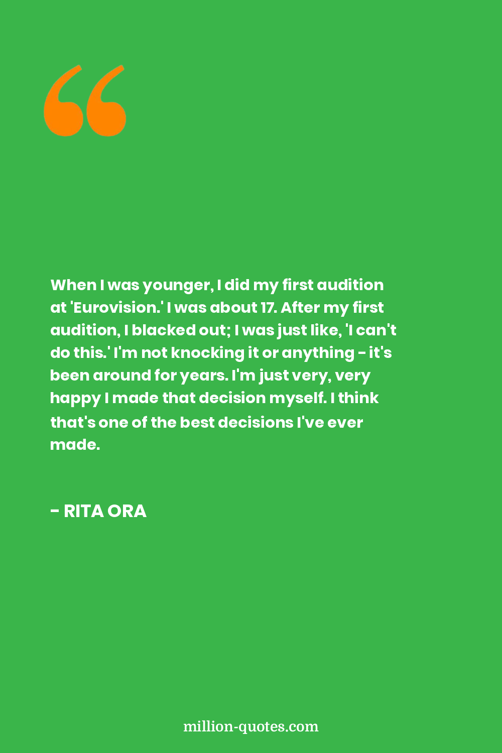When I was younger, I did my first audition at 'Eurovision.' I was about 17. After my first audition, I blacked out; I was just like, 'I can't do this.' I'm not knocking it or anything - it's been around for years. I'm just very, very happy I made that decision myself. I think that's one of the best decisions I've ever made.