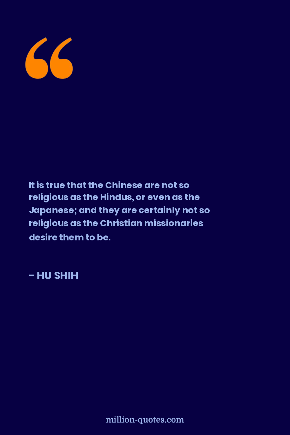 It is true that the Chinese are not so religious as the Hindus, or even as the Japanese; and they are certainly not so religious as the Christian missionaries desire them to be.