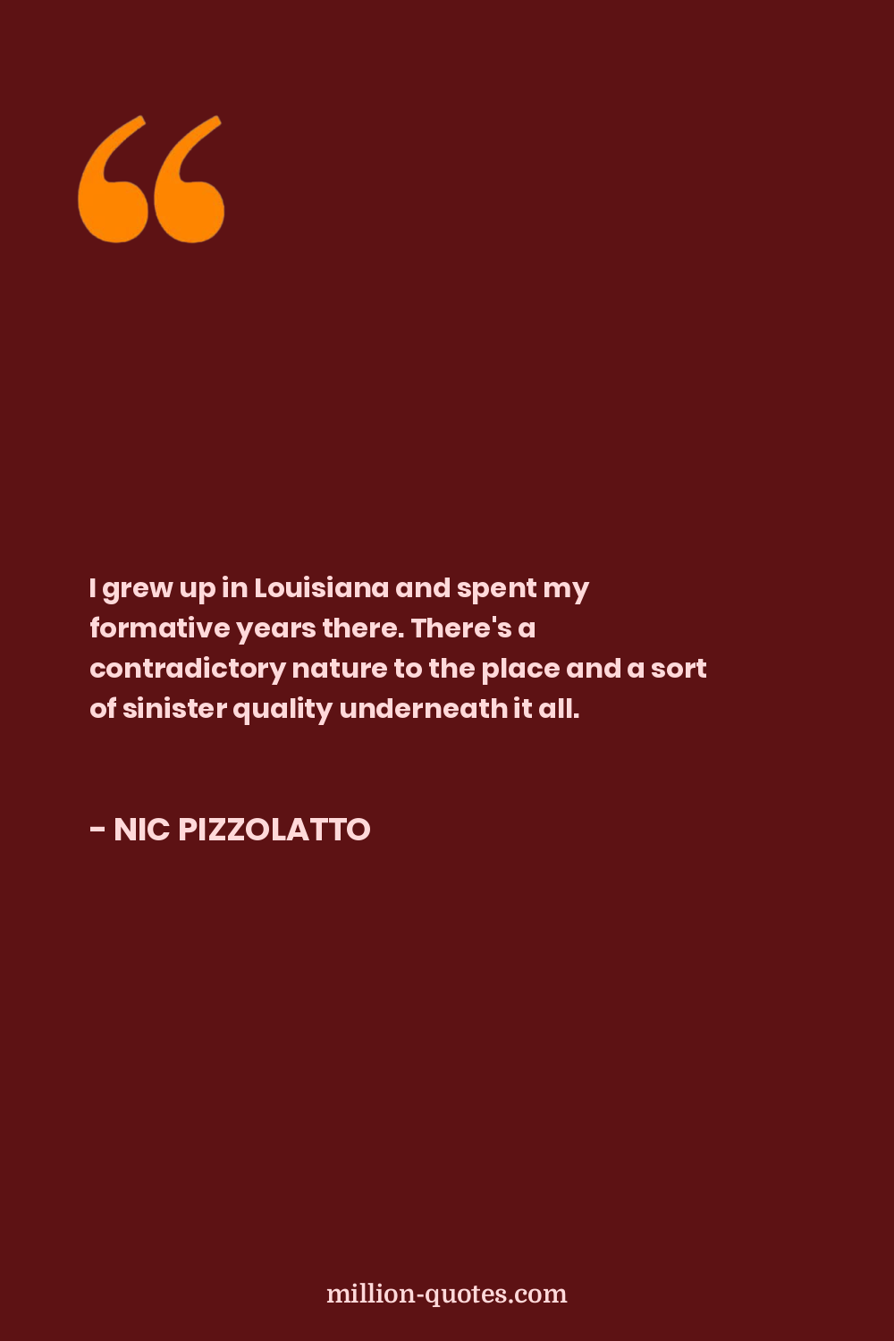 I grew up in Louisiana and spent my formative years there. There's a contradictory nature to the place and a sort of sinister quality underneath it all.