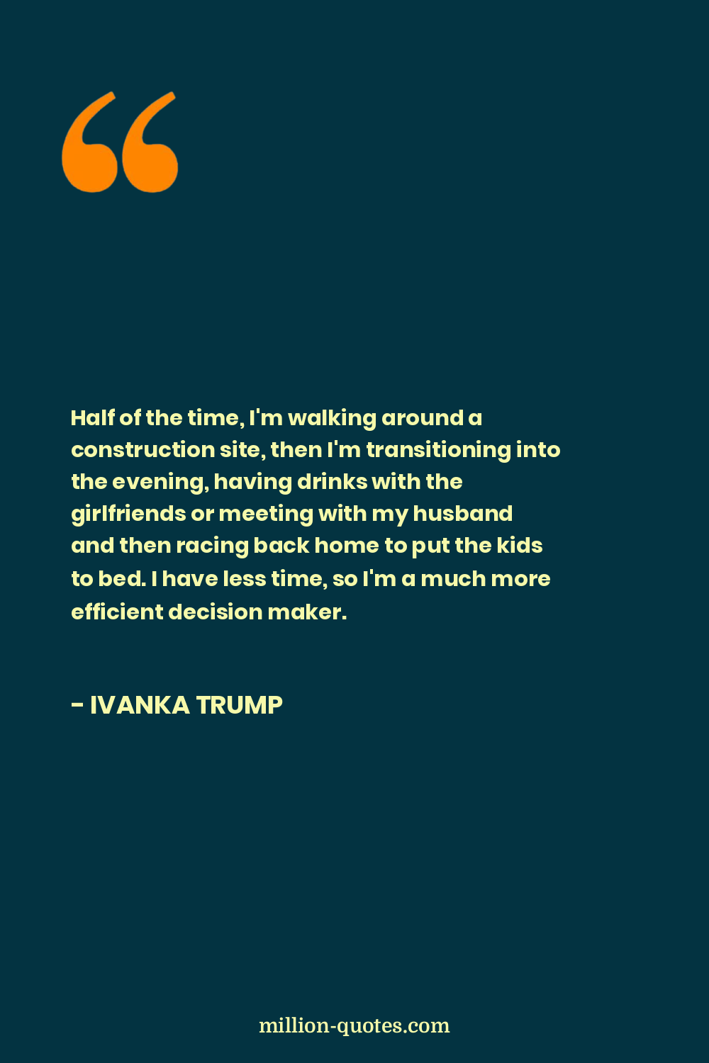 Half of the time, I'm walking around a construction site, then I'm transitioning into the evening, having drinks with the girlfriends or meeting with my husband and then racing back home to put the kids to bed. I have less time, so I'm a much more efficient decision maker.