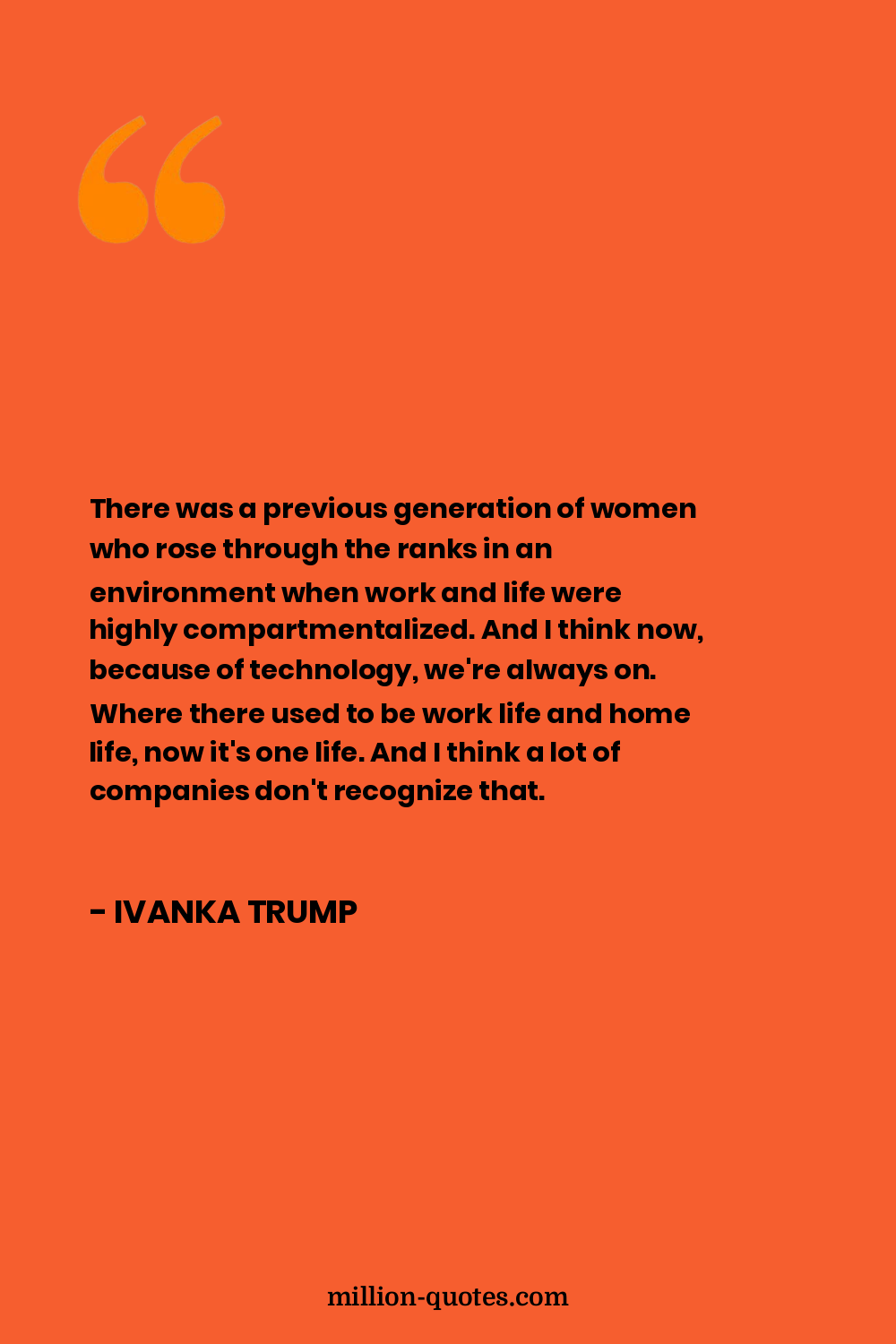 There was a previous generation of women who rose through the ranks in an environment when work and life were highly compartmentalized. And I think now, because of technology, we're always on. Where there used to be work life and home life, now it's one life. And I think a lot of companies don't recognize that.