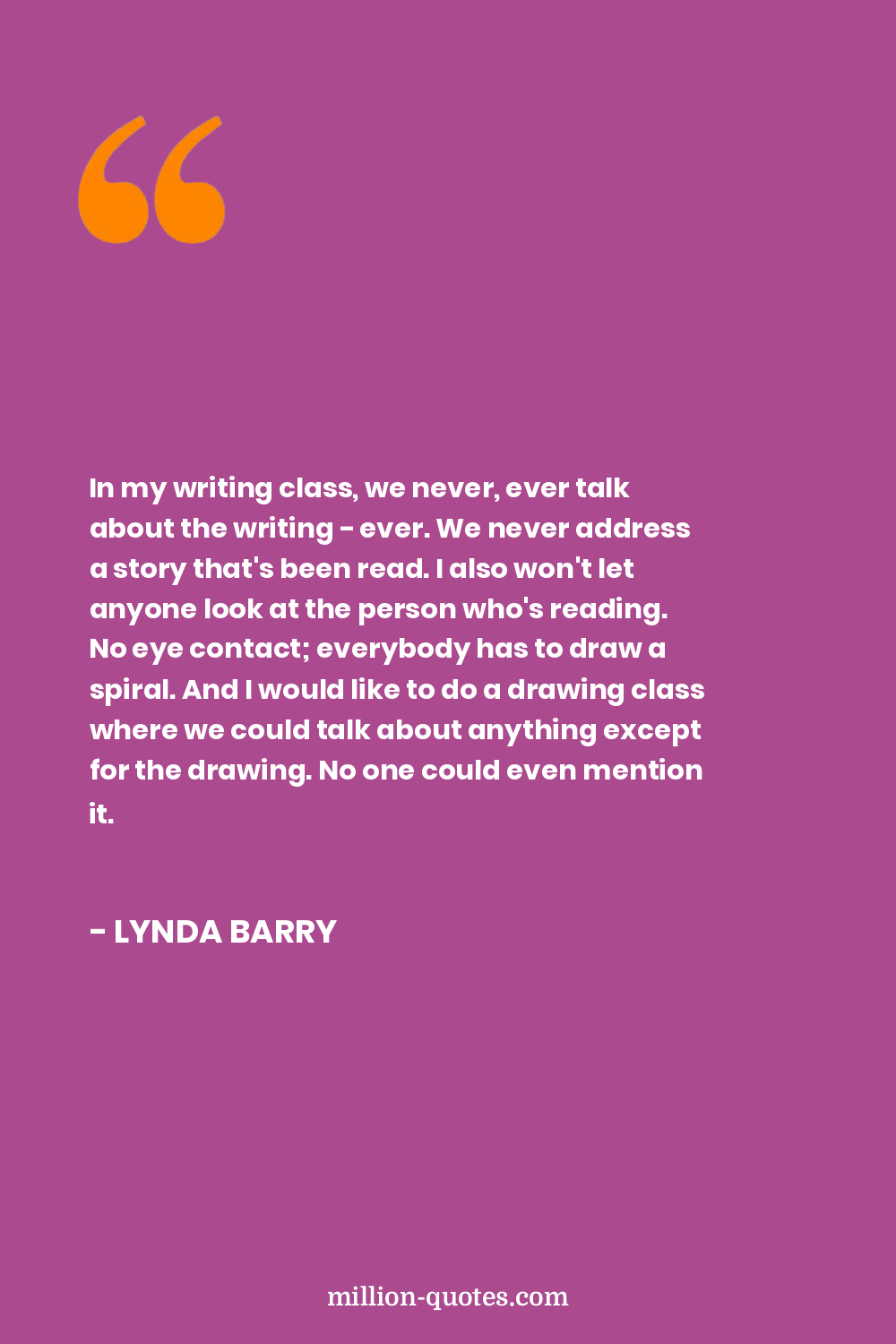 In my writing class, we never, ever talk about the writing - ever. We never address a story that's been read. I also won't let anyone look at the person who's reading. No eye contact; everybody has to draw a spiral. And I would like to do a drawing class where we could talk about anything except for the drawing. No one could even mention it.