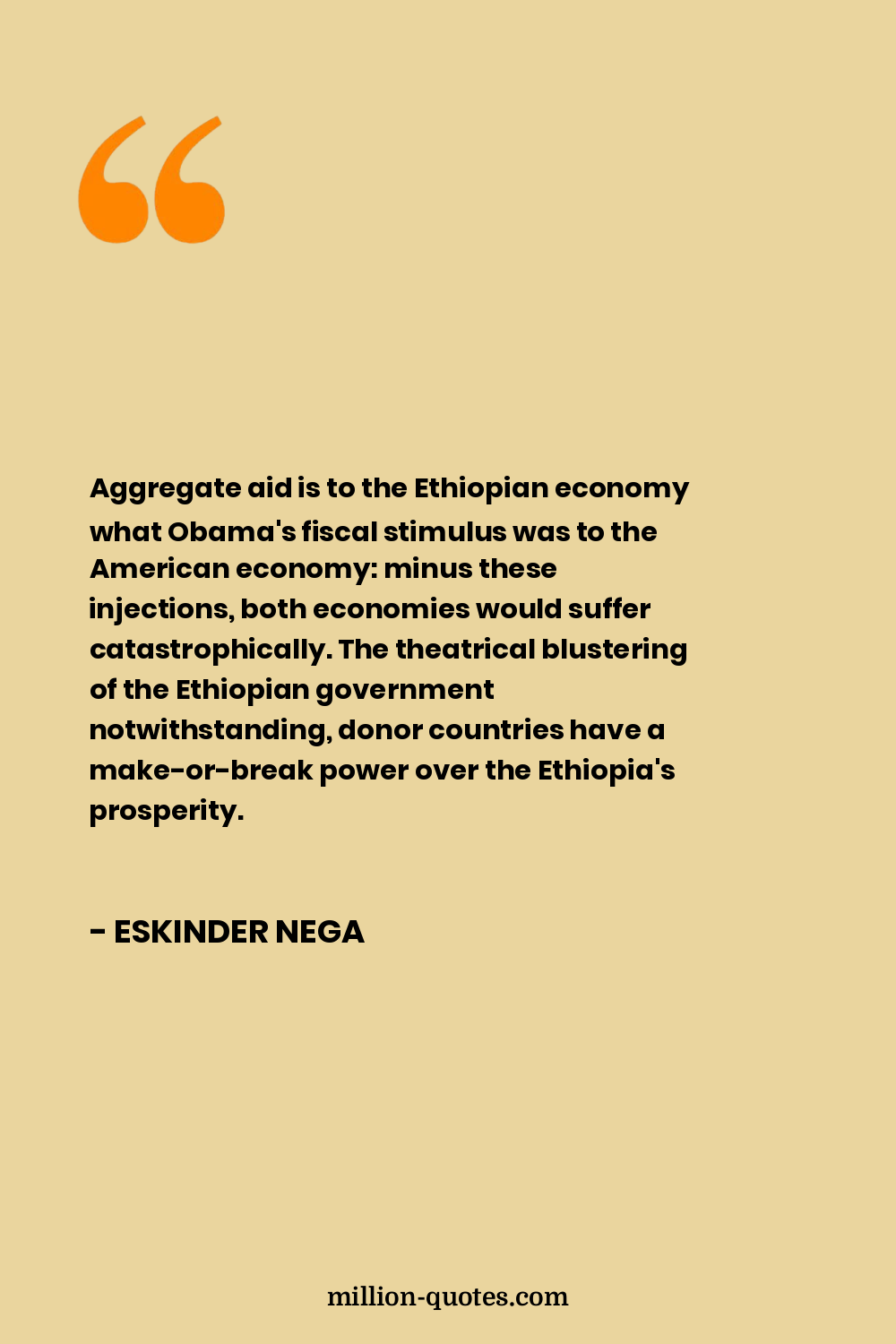Aggregate aid is to the Ethiopian economy what Obama's fiscal stimulus was to the American economy: minus these injections, both economies would suffer catastrophically. The theatrical blustering of the Ethiopian government notwithstanding, donor countries have a make-or-break power over the Ethiopia's prosperity.