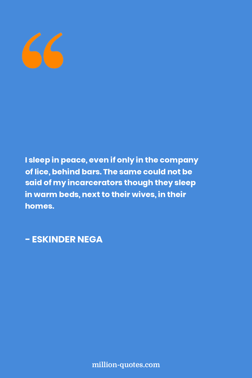 I sleep in peace, even if only in the company of lice, behind bars. The same could not be said of my incarcerators though they sleep in warm beds, next to their wives, in their homes.