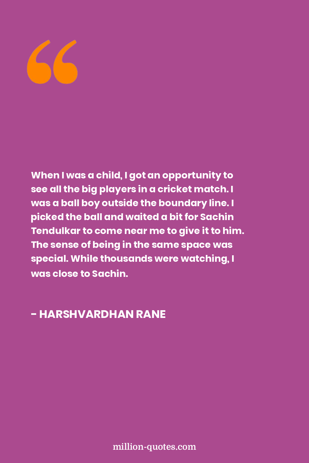 When I was a child, I got an opportunity to see all the big players in a cricket match. I was a ball boy outside the boundary line. I picked the ball and waited a bit for Sachin Tendulkar to come near me to give it to him. The sense of being in the same space was special. While thousands were watching, I was close to Sachin.