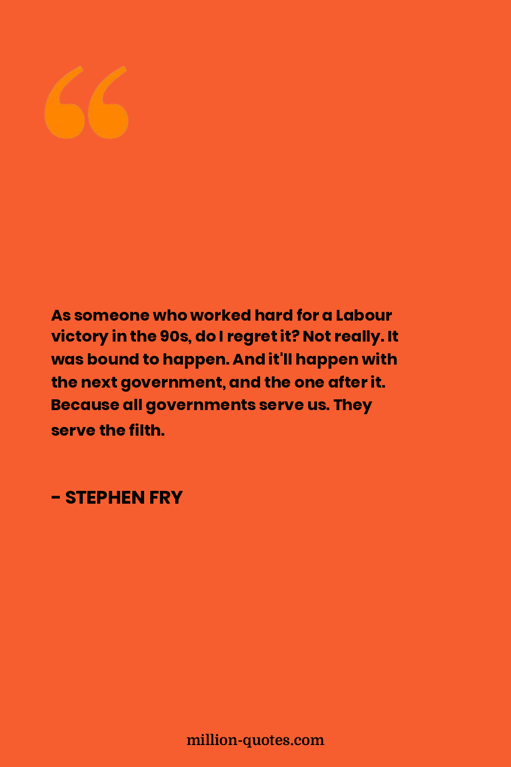 As someone who worked hard for a Labour victory in the 90s, do I regret it? Not really. It was bound to happen. And it'll happen with the next government, and the one after it. Because all governments serve us. They serve the filth.