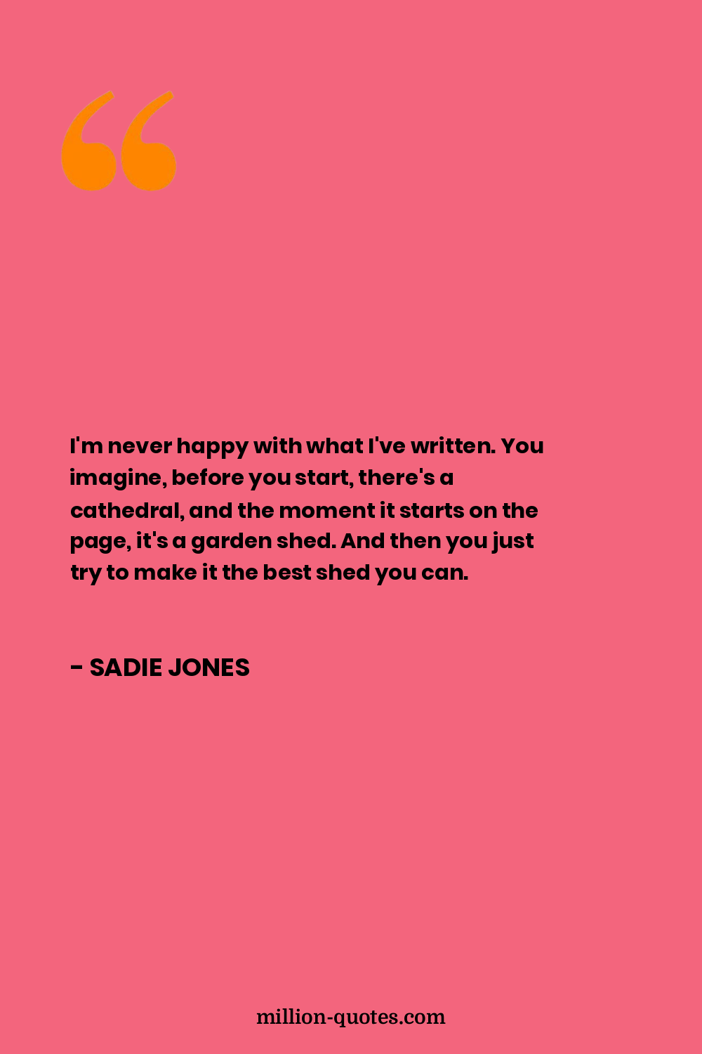 I'm never happy with what I've written. You imagine, before you start, there's a cathedral, and the moment it starts on the page, it's a garden shed. And then you just try to make it the best shed you can.