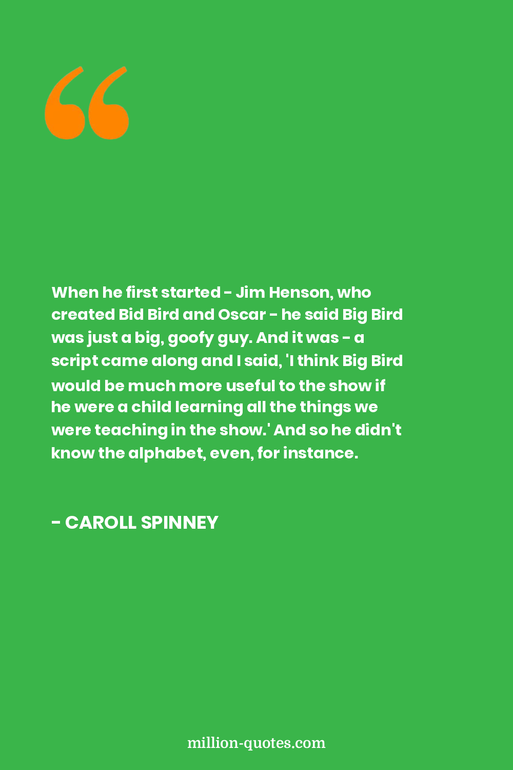 When he first started - Jim Henson, who created Bid Bird and Oscar - he said Big Bird was just a big, goofy guy. And it was - a script came along and I said, 'I think Big Bird would be much more useful to the show if he were a child learning all the things we were teaching in the show.' And so he didn't know the alphabet, even, for instance.