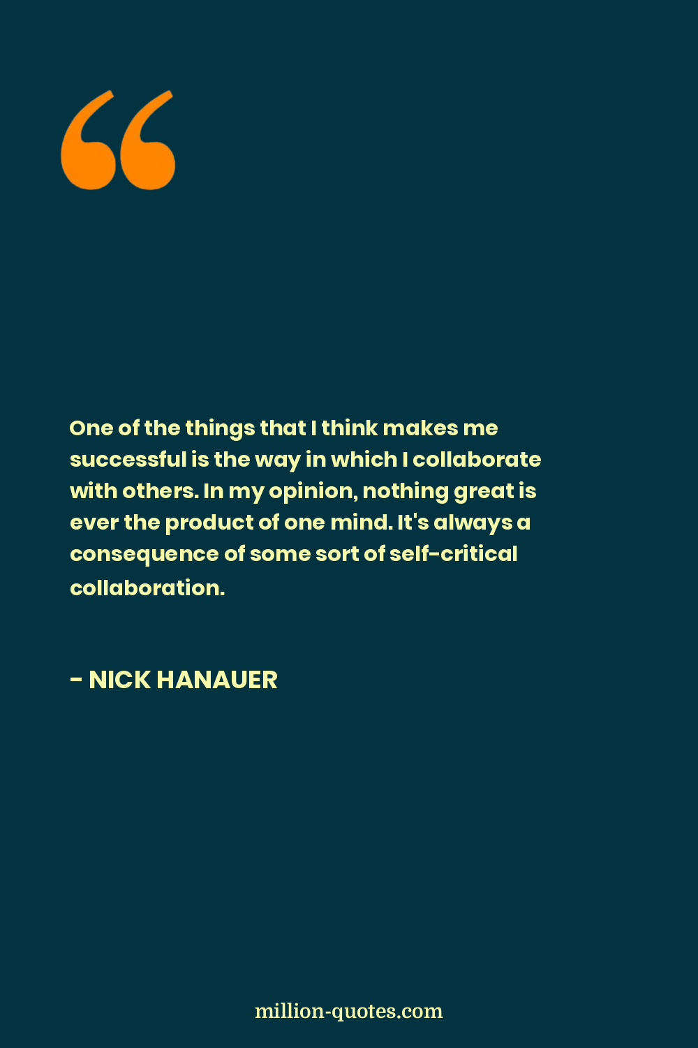 One of the things that I think makes me successful is the way in which I collaborate with others. In my opinion, nothing great is ever the product of one mind. It's always a consequence of some sort of self-critical collaboration.