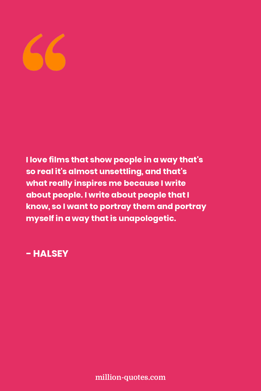 I love films that show people in a way that's so real it's almost unsettling, and that's what really inspires me because I write about people. I write about people that I know, so I want to portray them and portray myself in a way that is unapologetic.