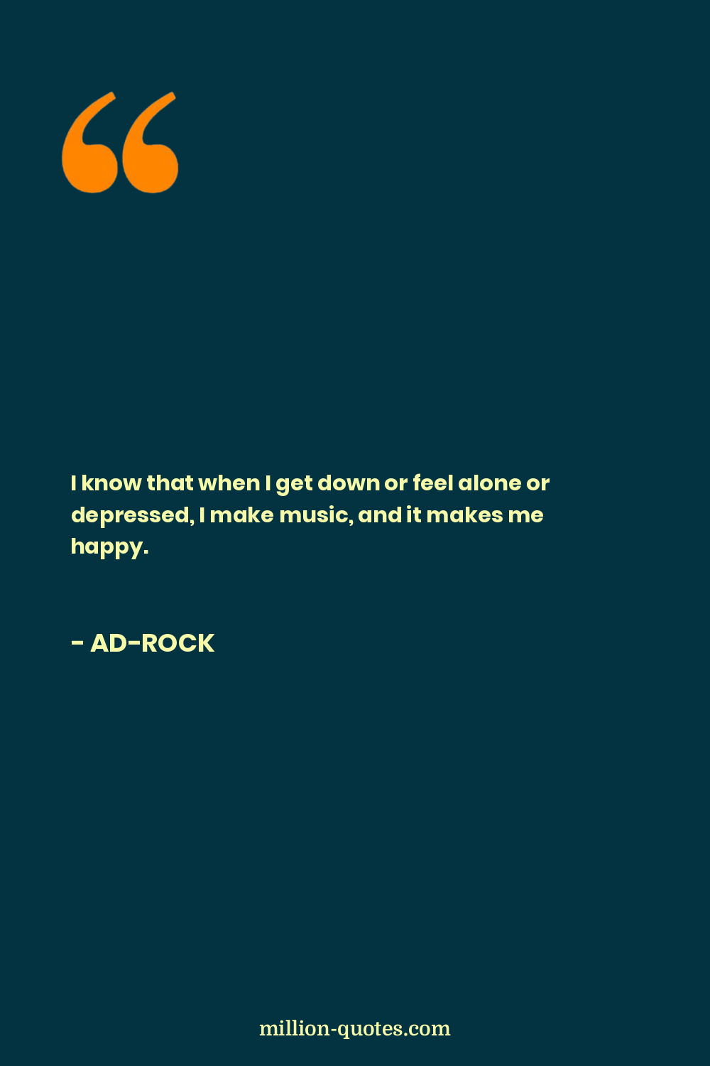 I know that when I get down or feel alone or depressed, I make music, and it makes me happy.