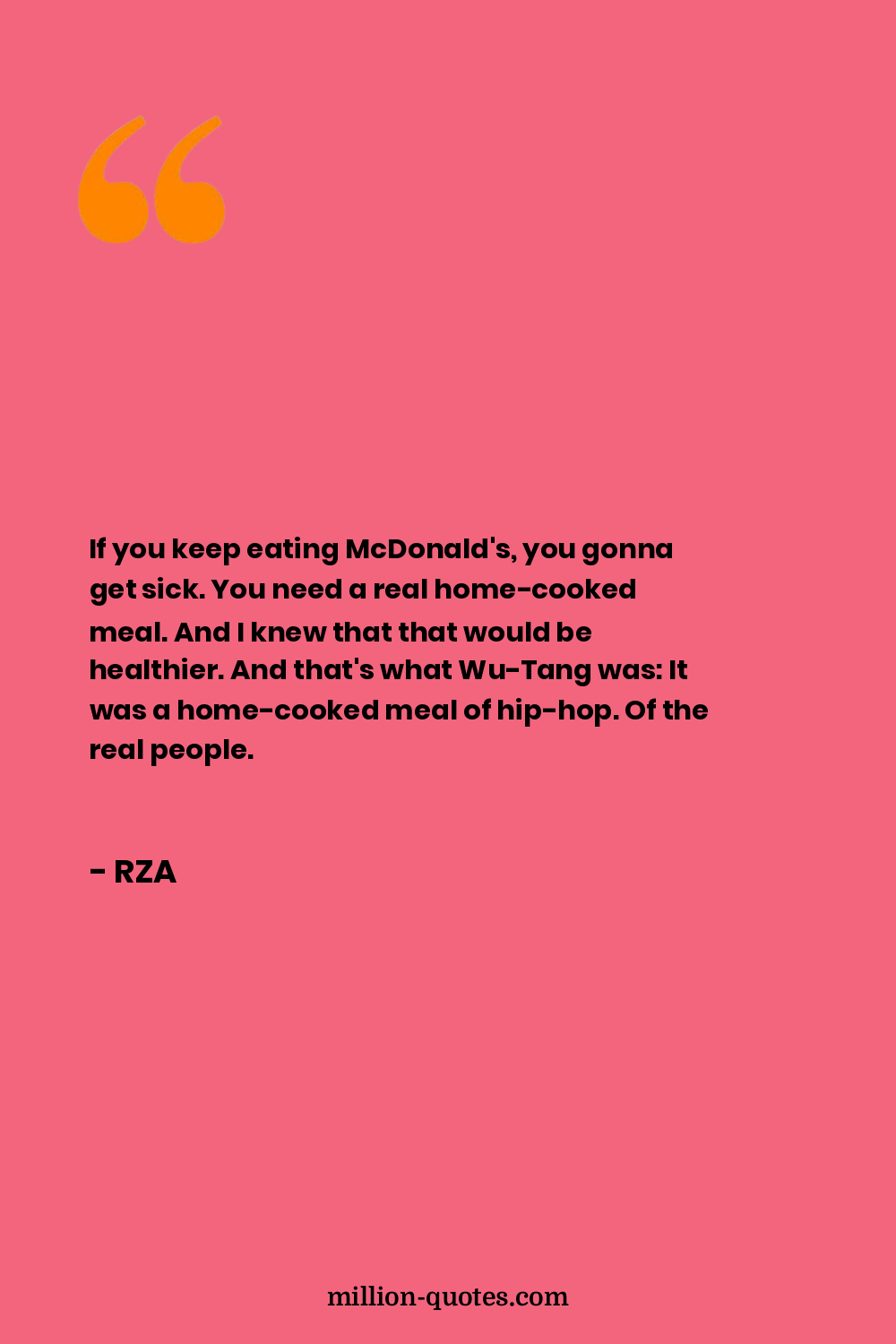 If you keep eating McDonald's, you gonna get sick. You need a real home-cooked meal. And I knew that that would be healthier. And that's what Wu-Tang was: It was a home-cooked meal of hip-hop. Of the real people.