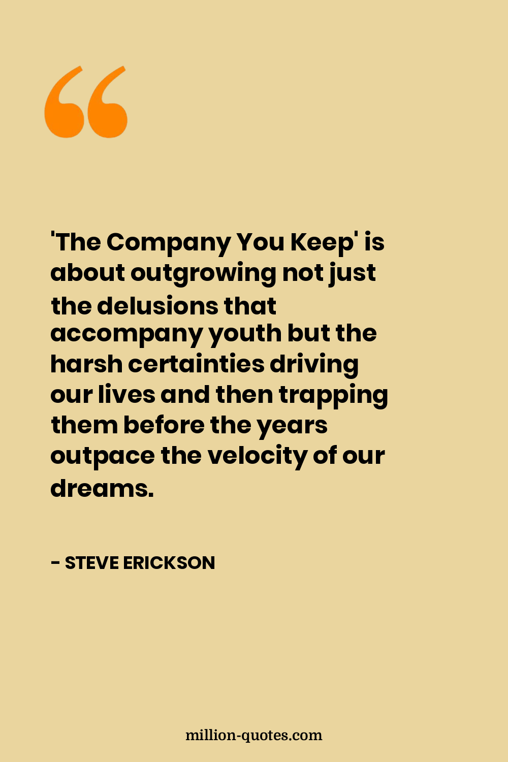 'The Company You Keep' is about outgrowing not just the delusions that accompany youth but the harsh certainties driving our lives and then trapping them before the years outpace the velocity of our dreams.