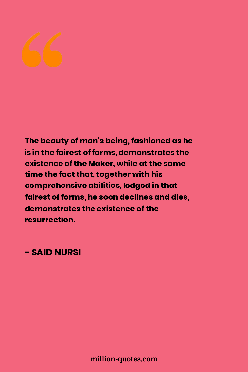 The beauty of man's being, fashioned as he is in the fairest of forms, demonstrates the existence of the Maker, while at the same time the fact that, together with his comprehensive abilities, lodged in that fairest of forms, he soon declines and dies, demonstrates the existence of the resurrection.