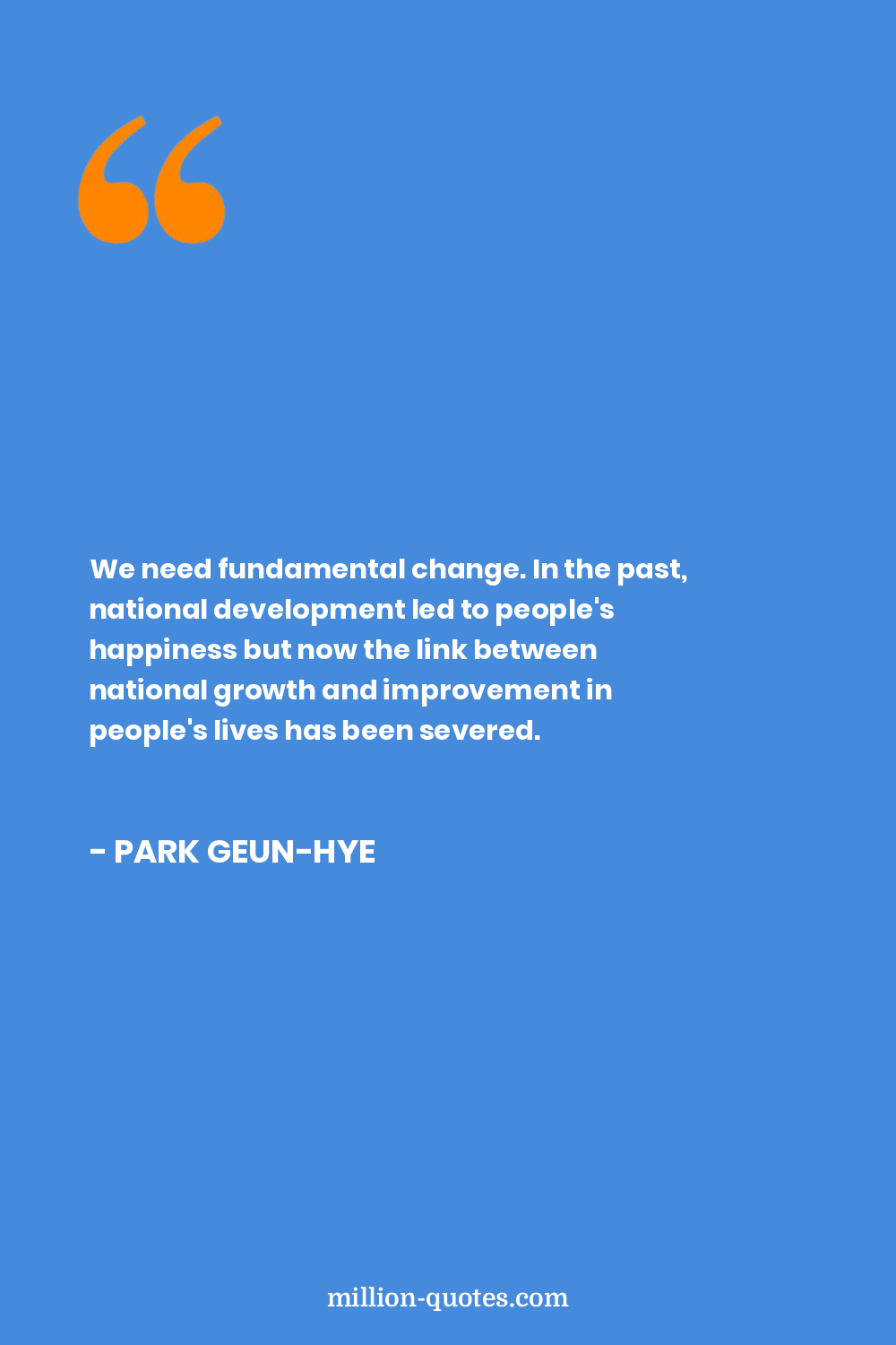 We need fundamental change. In the past, national development led to people's happiness but now the link between national growth and improvement in people's lives has been severed.