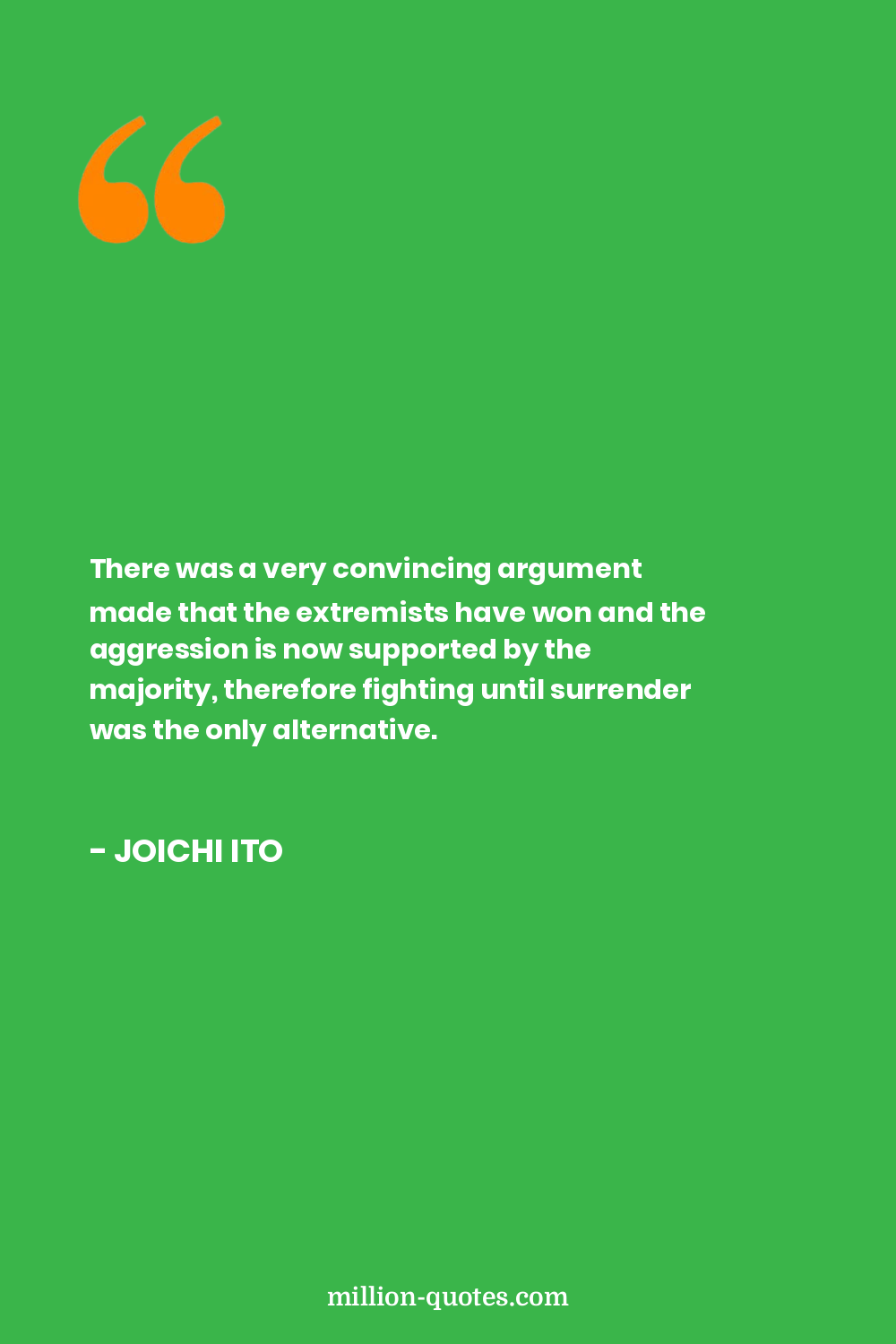 There was a very convincing argument made that the extremists have won and the aggression is now supported by the majority, therefore fighting until surrender was the only alternative.