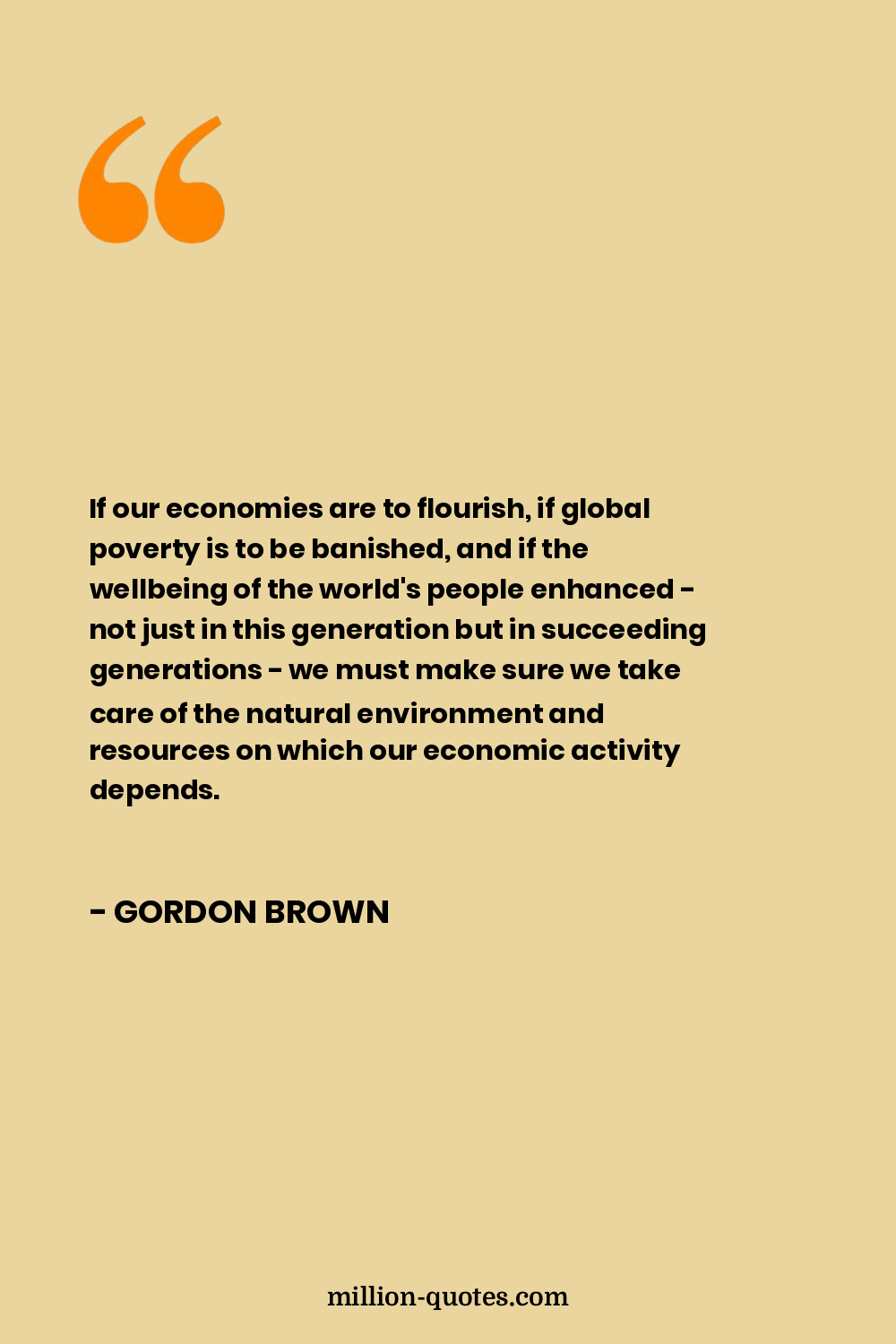 If our economies are to flourish, if global poverty is to be banished, and if the wellbeing of the world's people enhanced - not just in this generation but in succeeding generations - we must make sure we take care of the natural environment and resources on which our economic activity depends.