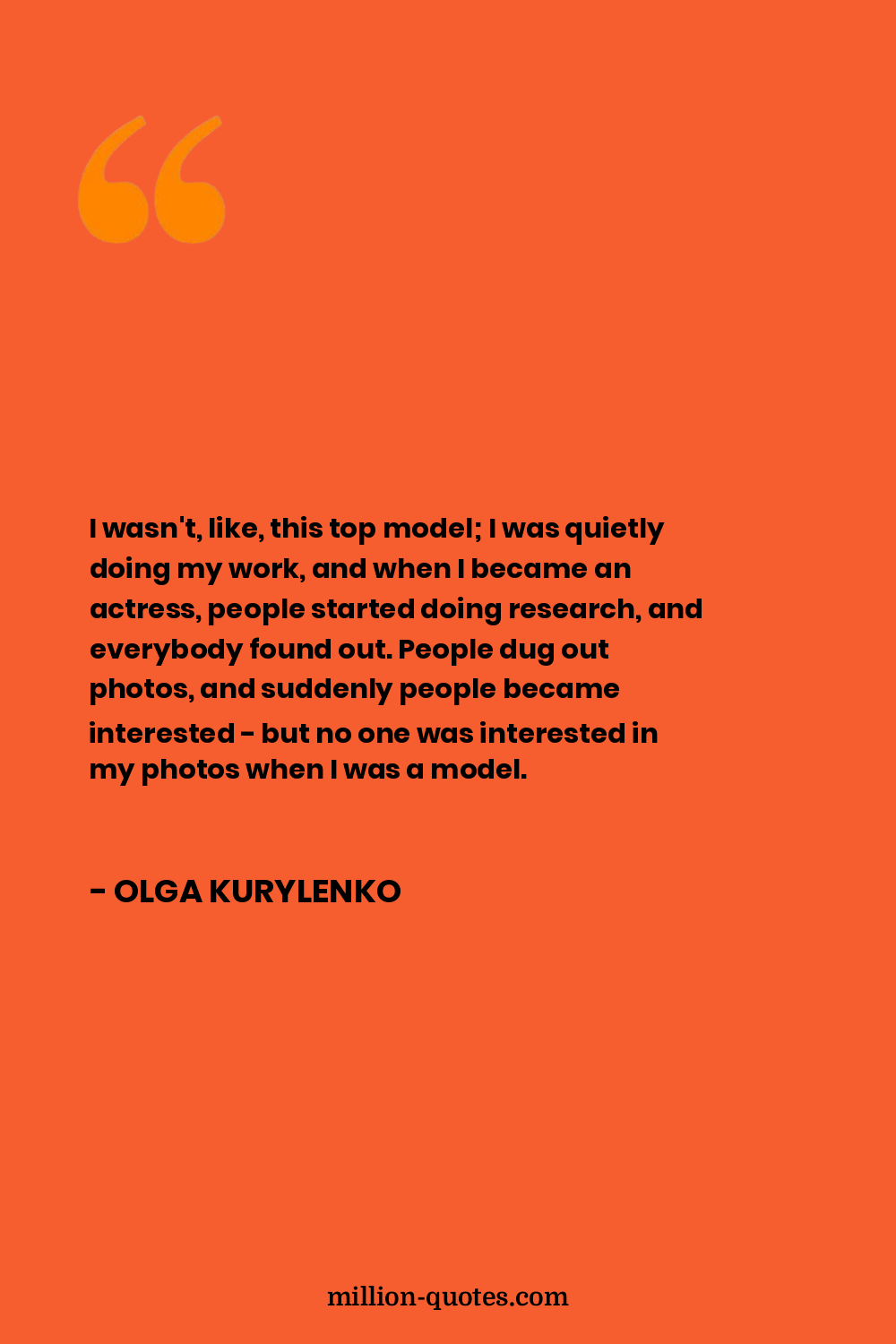 I wasn't, like, this top model; I was quietly doing my work, and when I became an actress, people started doing research, and everybody found out. People dug out photos, and suddenly people became interested - but no one was interested in my photos when I was a model.