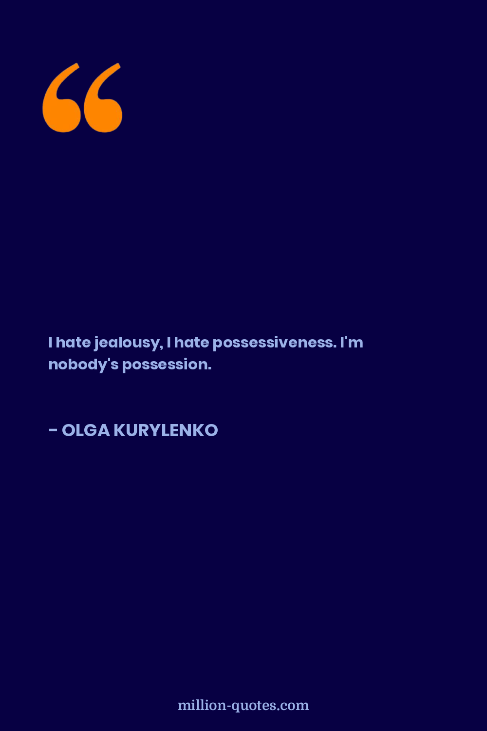 I hate jealousy, I hate possessiveness. I'm nobody's possession.