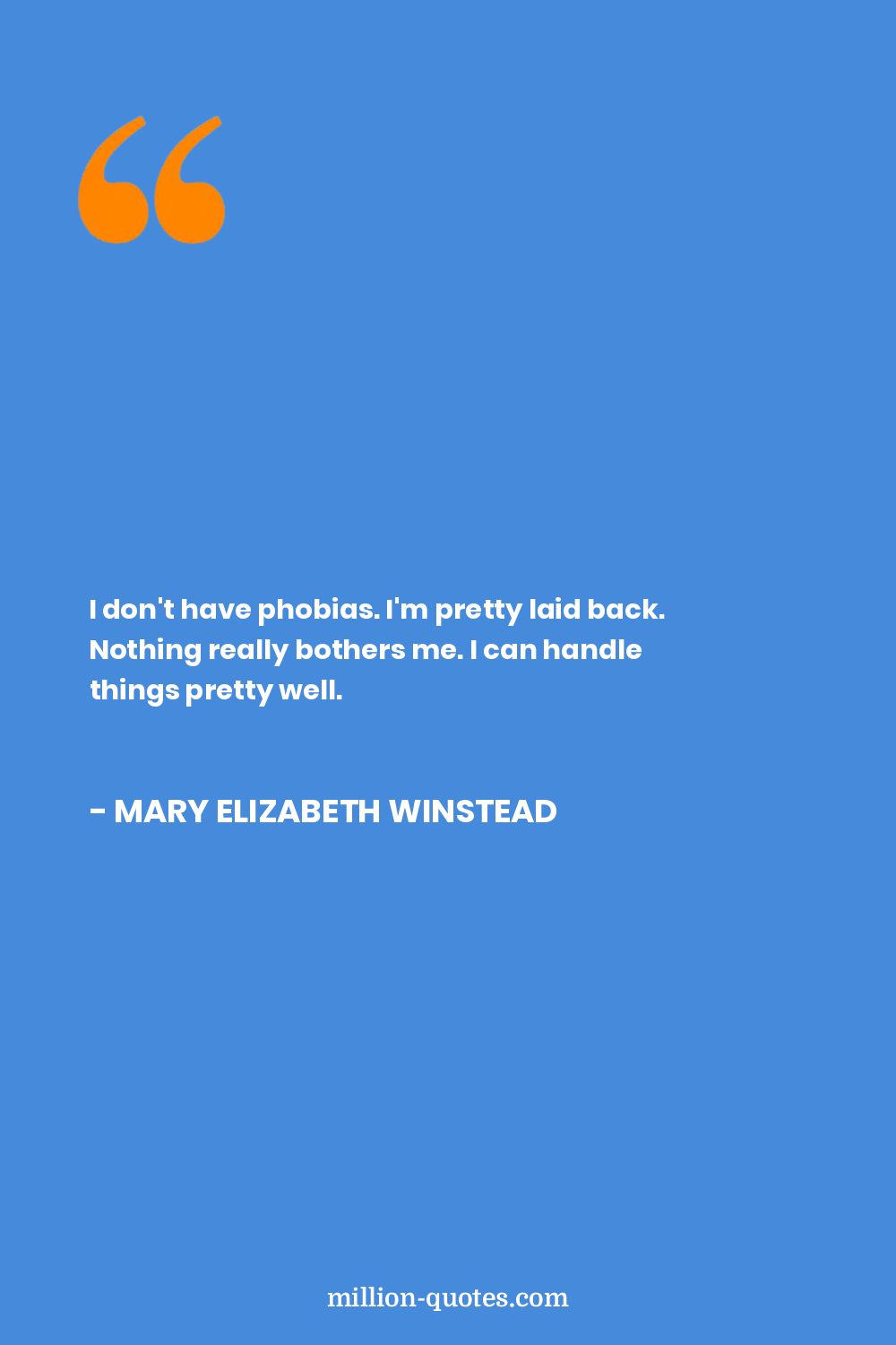 I don't have phobias. I'm pretty laid back. Nothing really bothers me. I can handle things pretty well.
