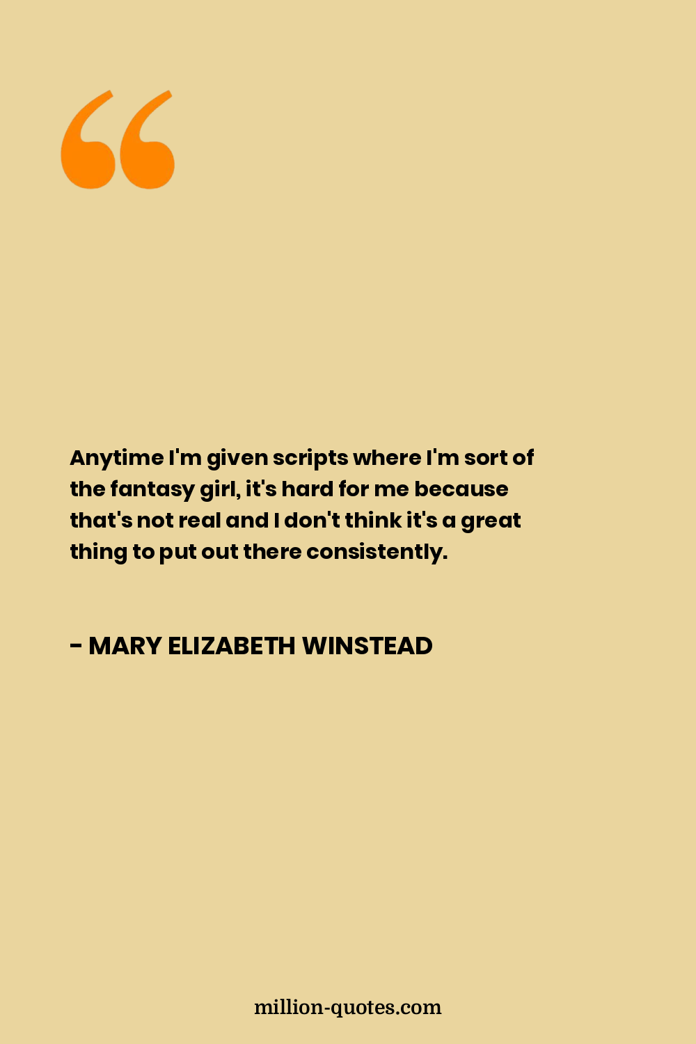Anytime I'm given scripts where I'm sort of the fantasy girl, it's hard for me because that's not real and I don't think it's a great thing to put out there consistently.