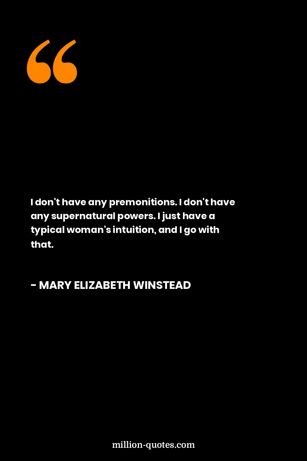 I don't have any premonitions. I don't have any supernatural powers. I just have a typical woman's intuition, and I go with that.