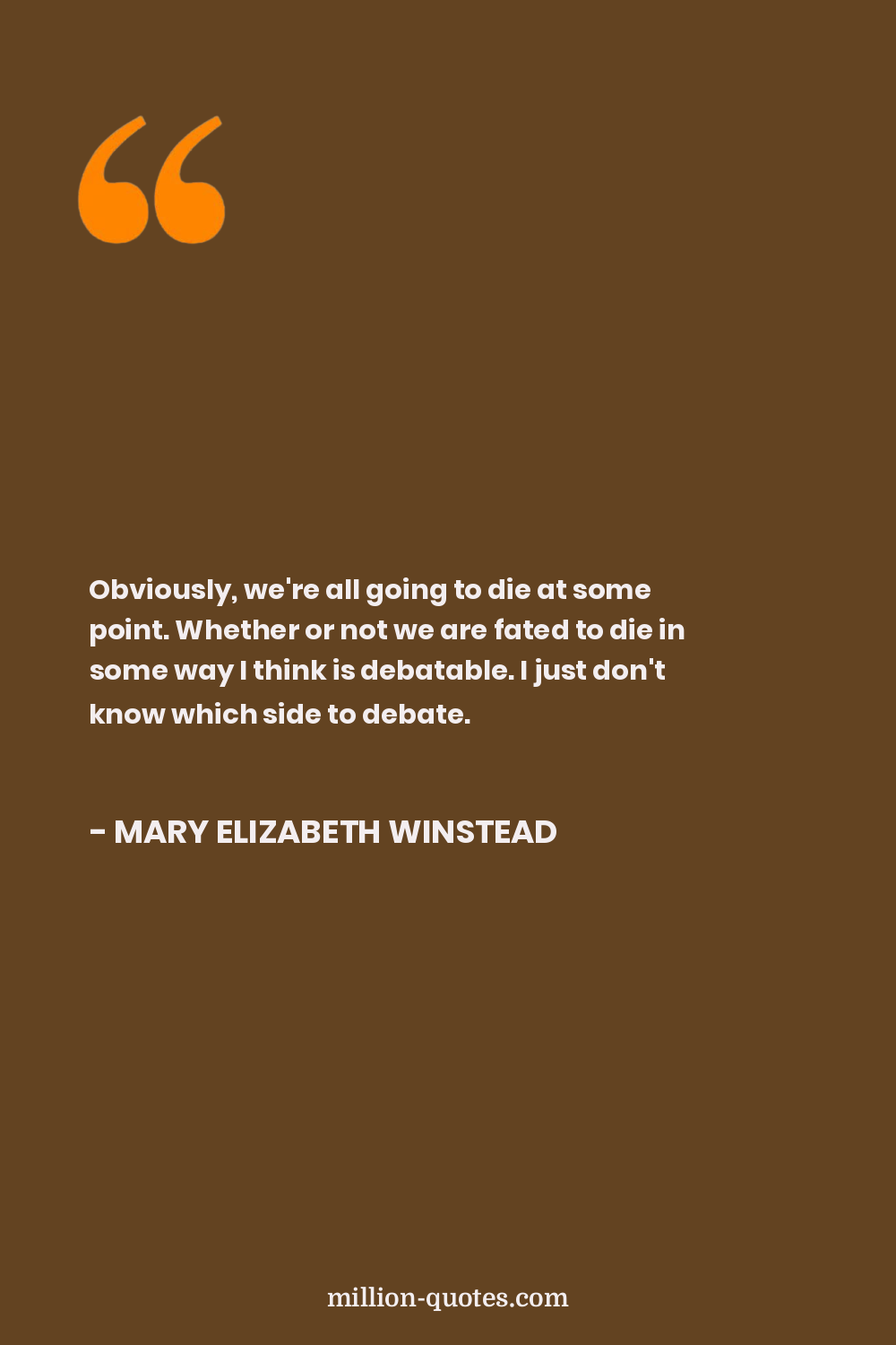 Obviously, we're all going to die at some point. Whether or not we are fated to die in some way I think is debatable. I just don't know which side to debate.