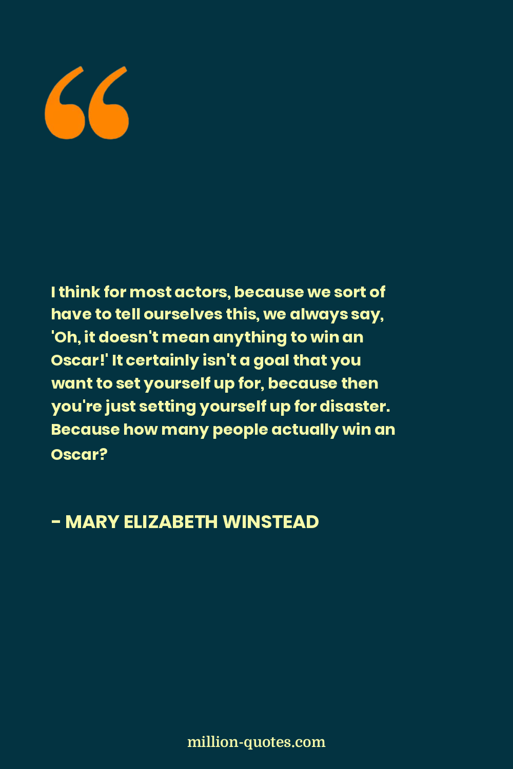 I think for most actors, because we sort of have to tell ourselves this, we always say, 'Oh, it doesn't mean anything to win an Oscar!' It certainly isn't a goal that you want to set yourself up for, because then you're just setting yourself up for disaster. Because how many people actually win an Oscar?