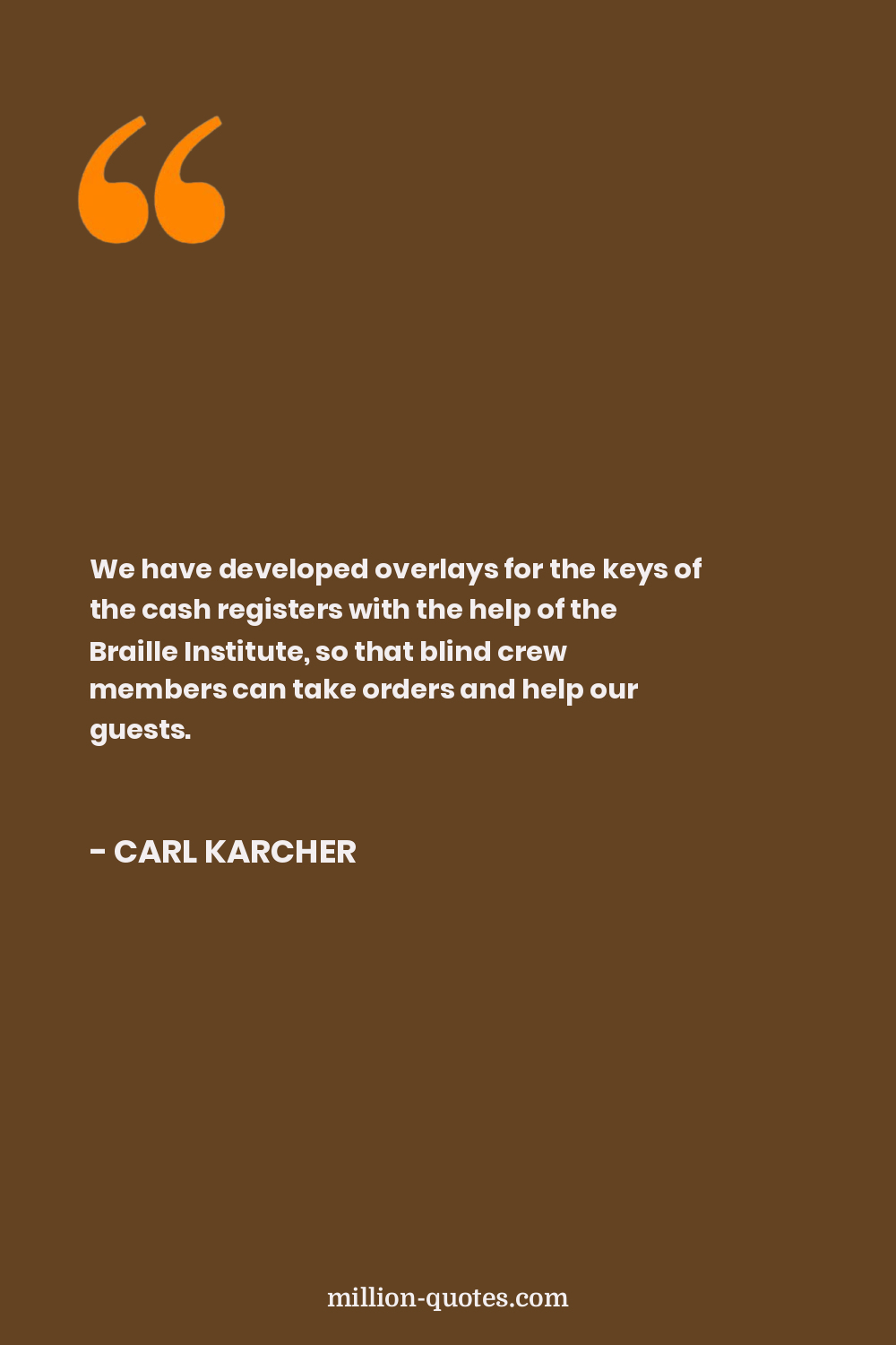 We have developed overlays for the keys of the cash registers with the help of the Braille Institute, so that blind crew members can take orders and help our guests.