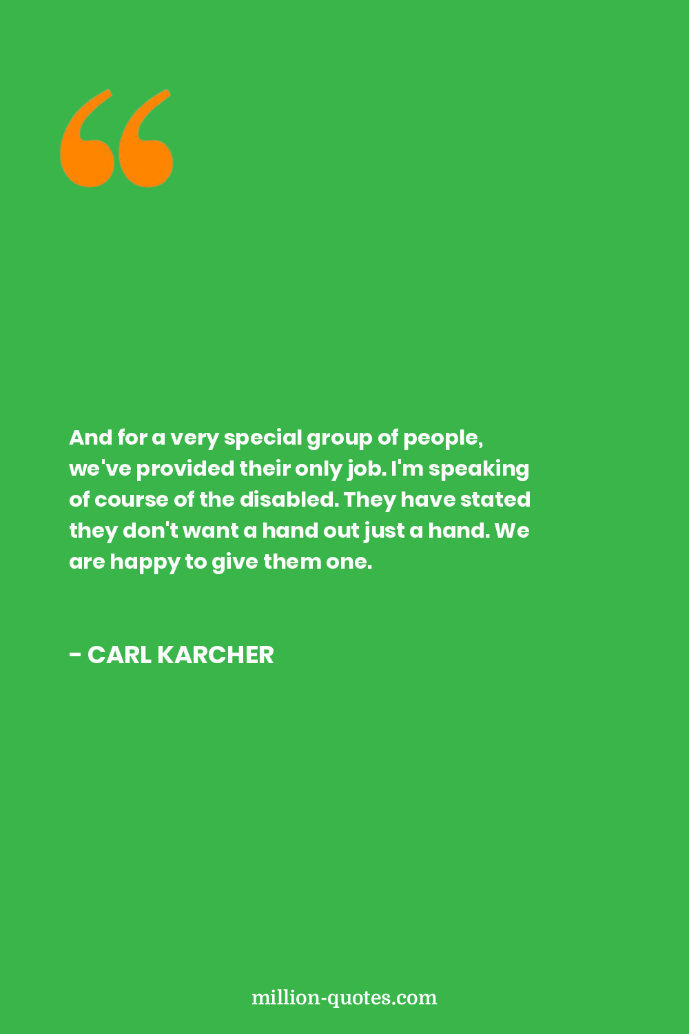 And for a very special group of people, we've provided their only job. I'm speaking of course of the disabled. They have stated they don't want a hand out just a hand. We are happy to give them one.