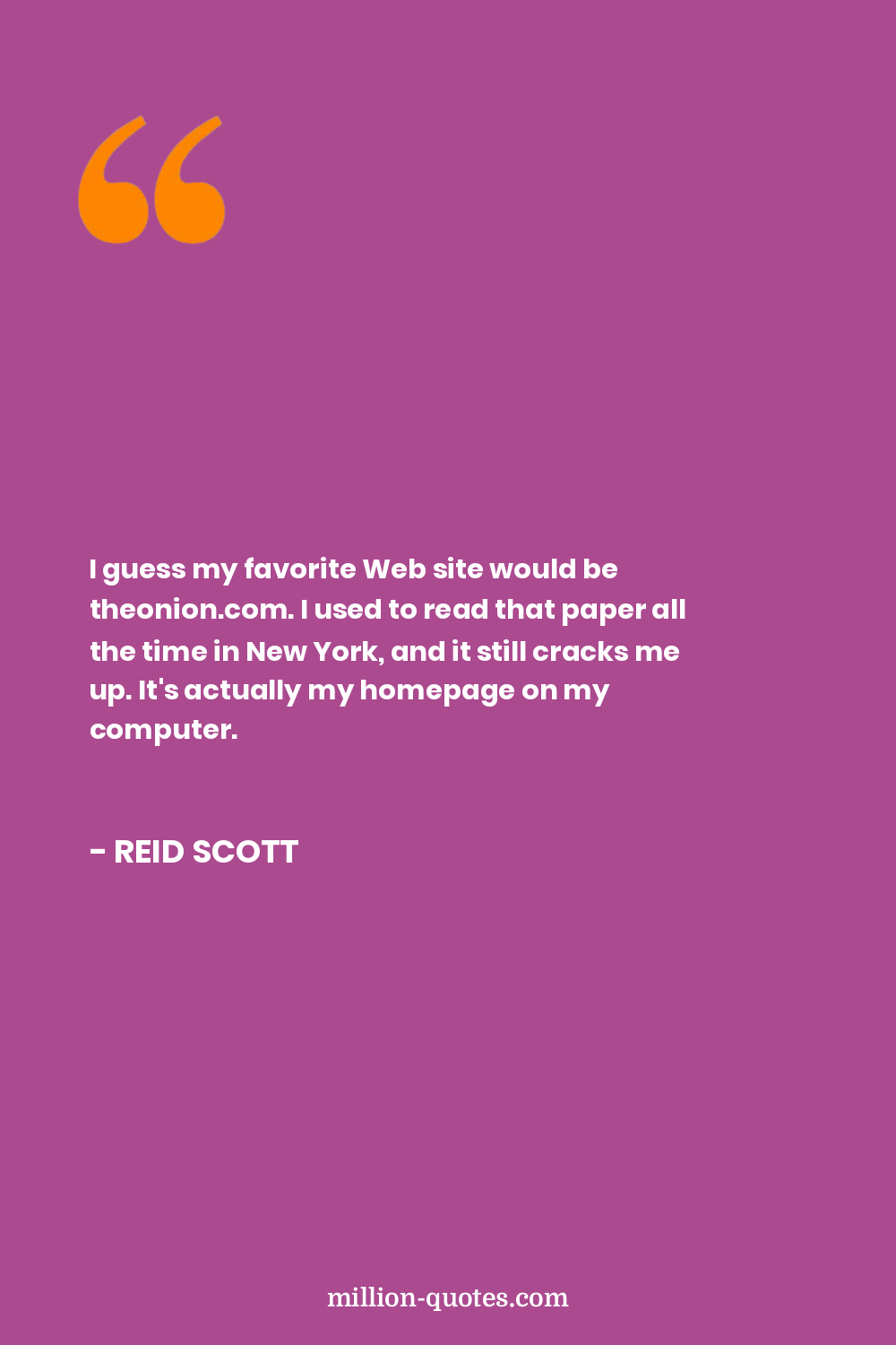 I guess my favorite Web site would be theonion.com. I used to read that paper all the time in New York, and it still cracks me up. It's actually my homepage on my computer.