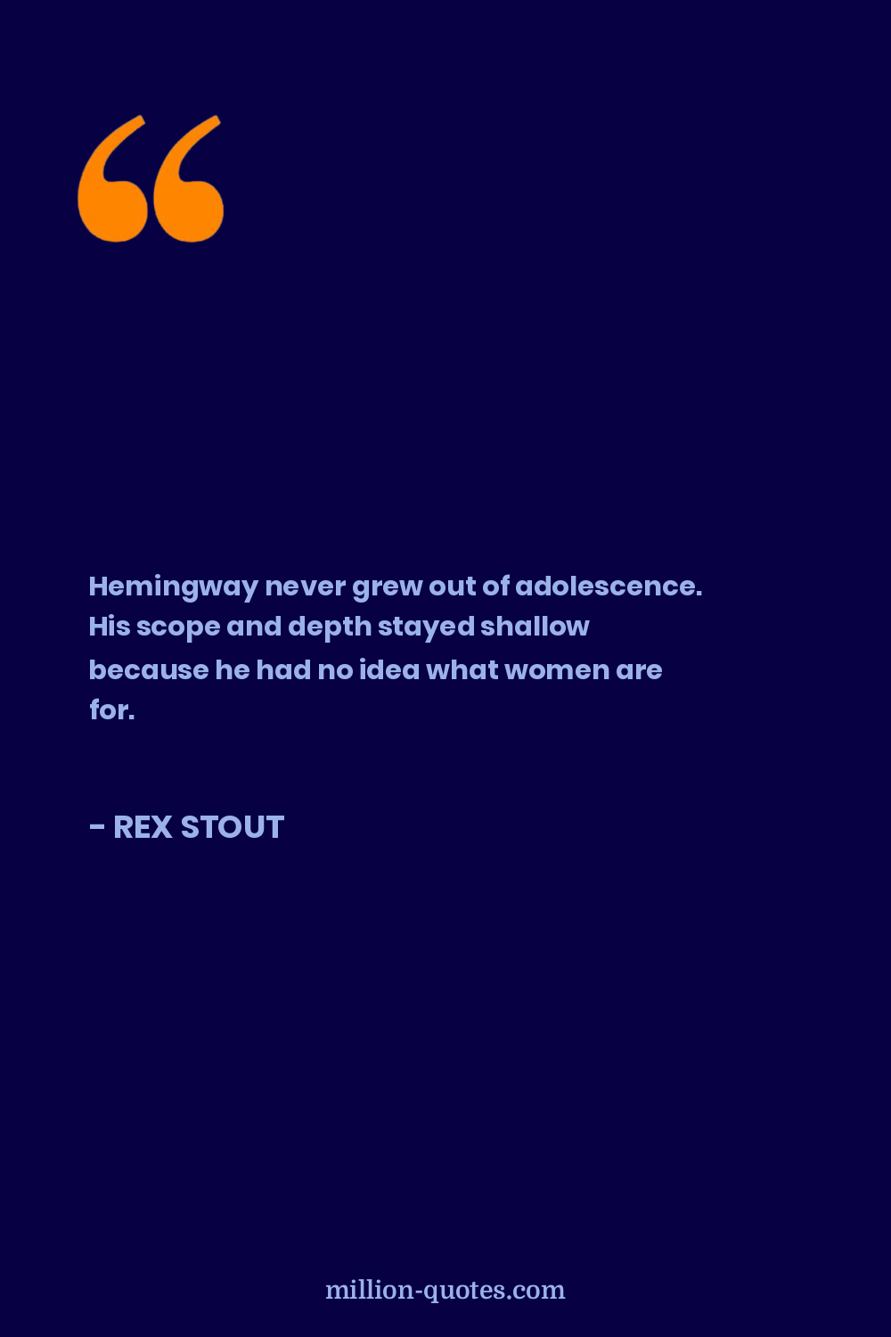 Hemingway never grew out of adolescence. His scope and depth stayed shallow because he had no idea what women are for.