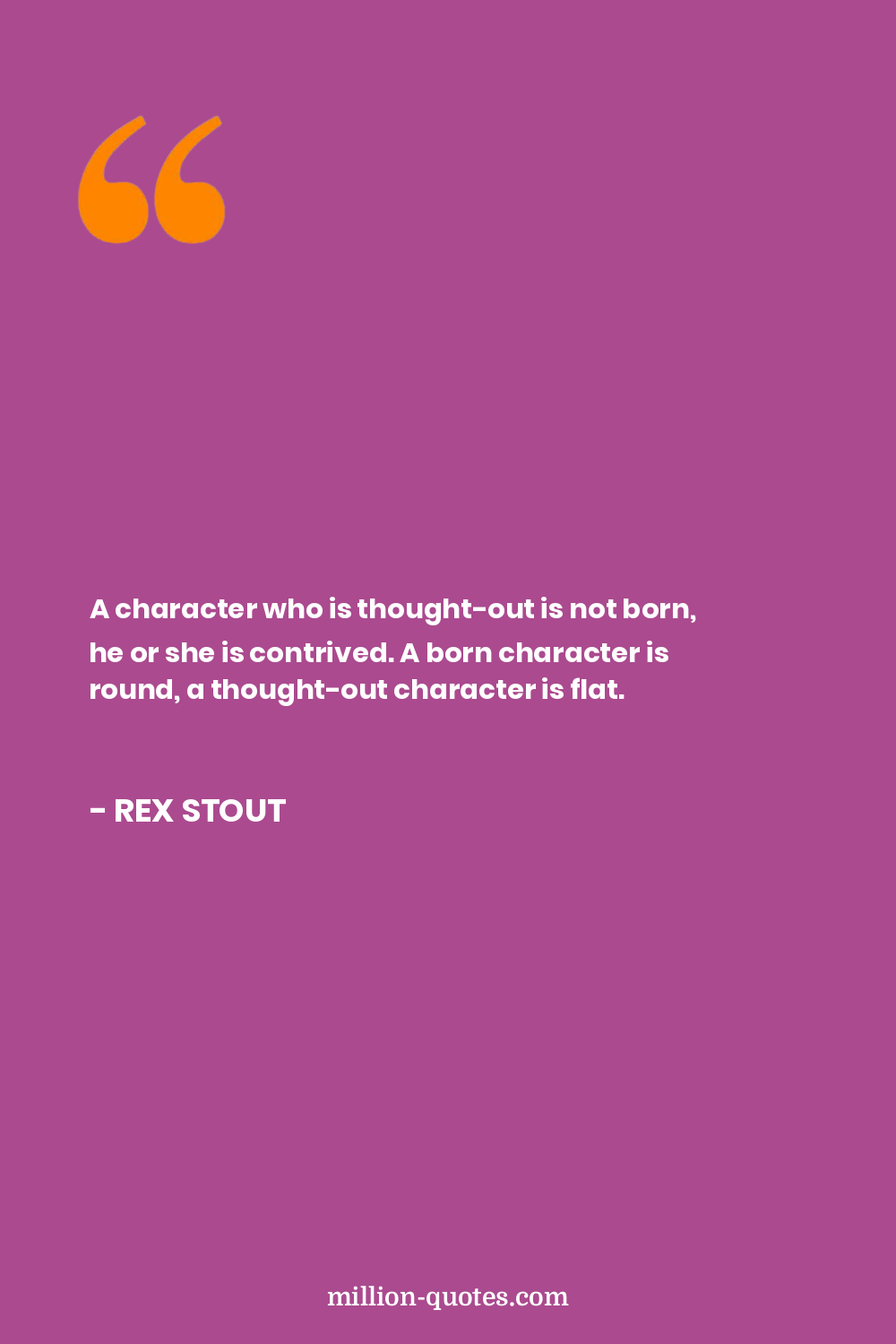 A character who is thought-out is not born, he or she is contrived. A born character is round, a thought-out character is flat.